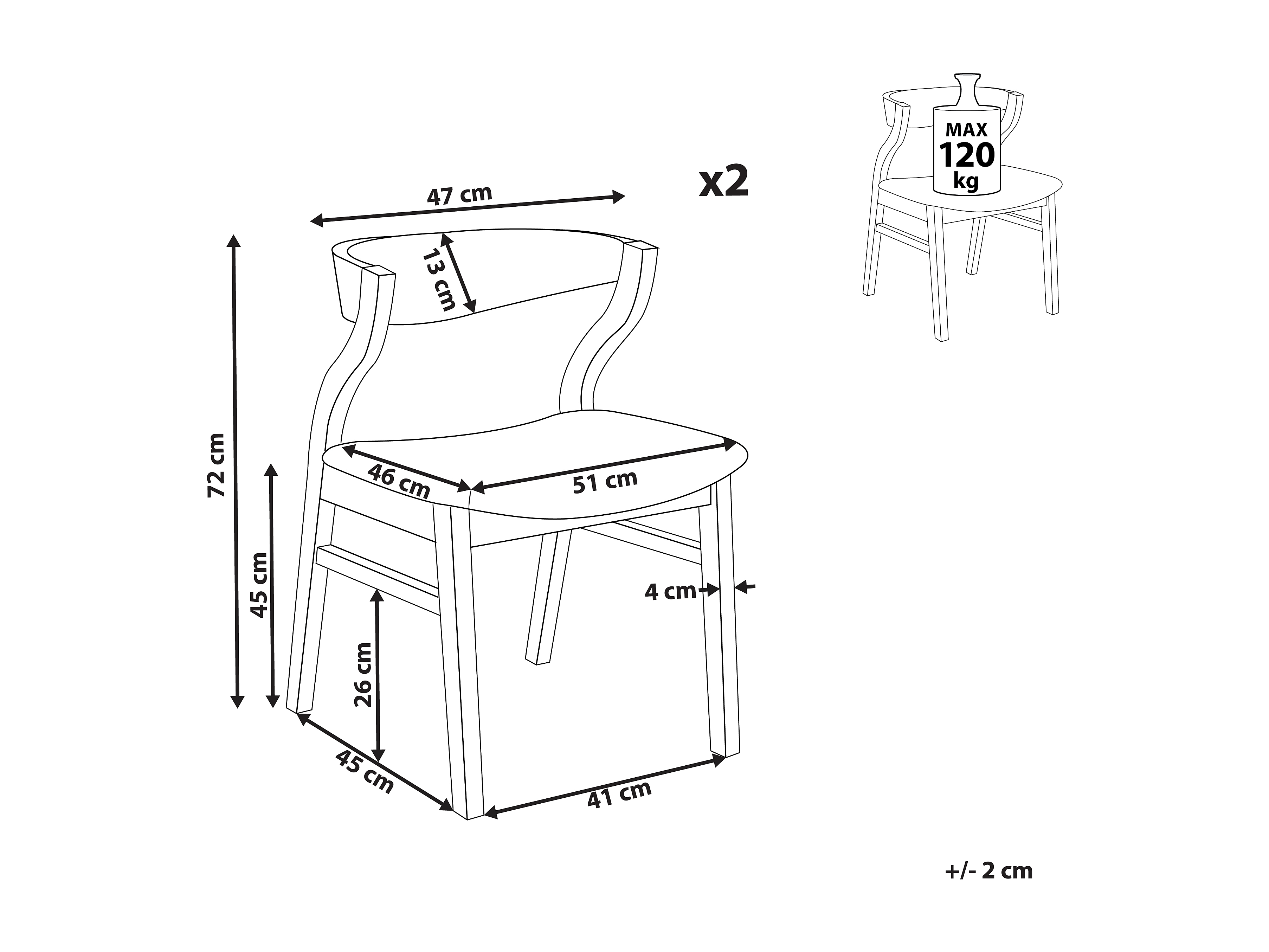 Lot de 2 chaises de salle à manger ABEE Marron clair