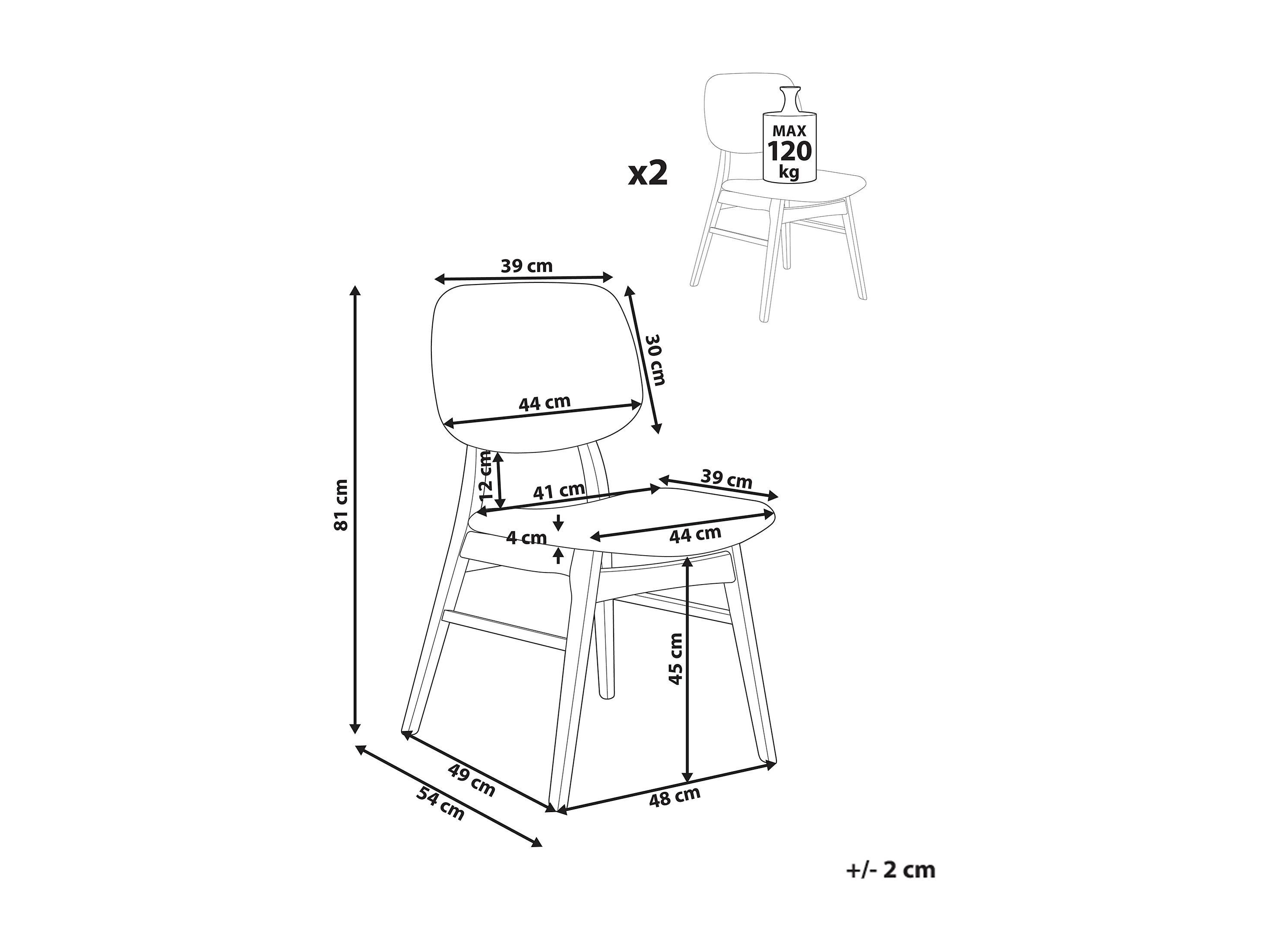Lot de 2 chaises de salle à manger ELAINE Bois Marron clair/beige