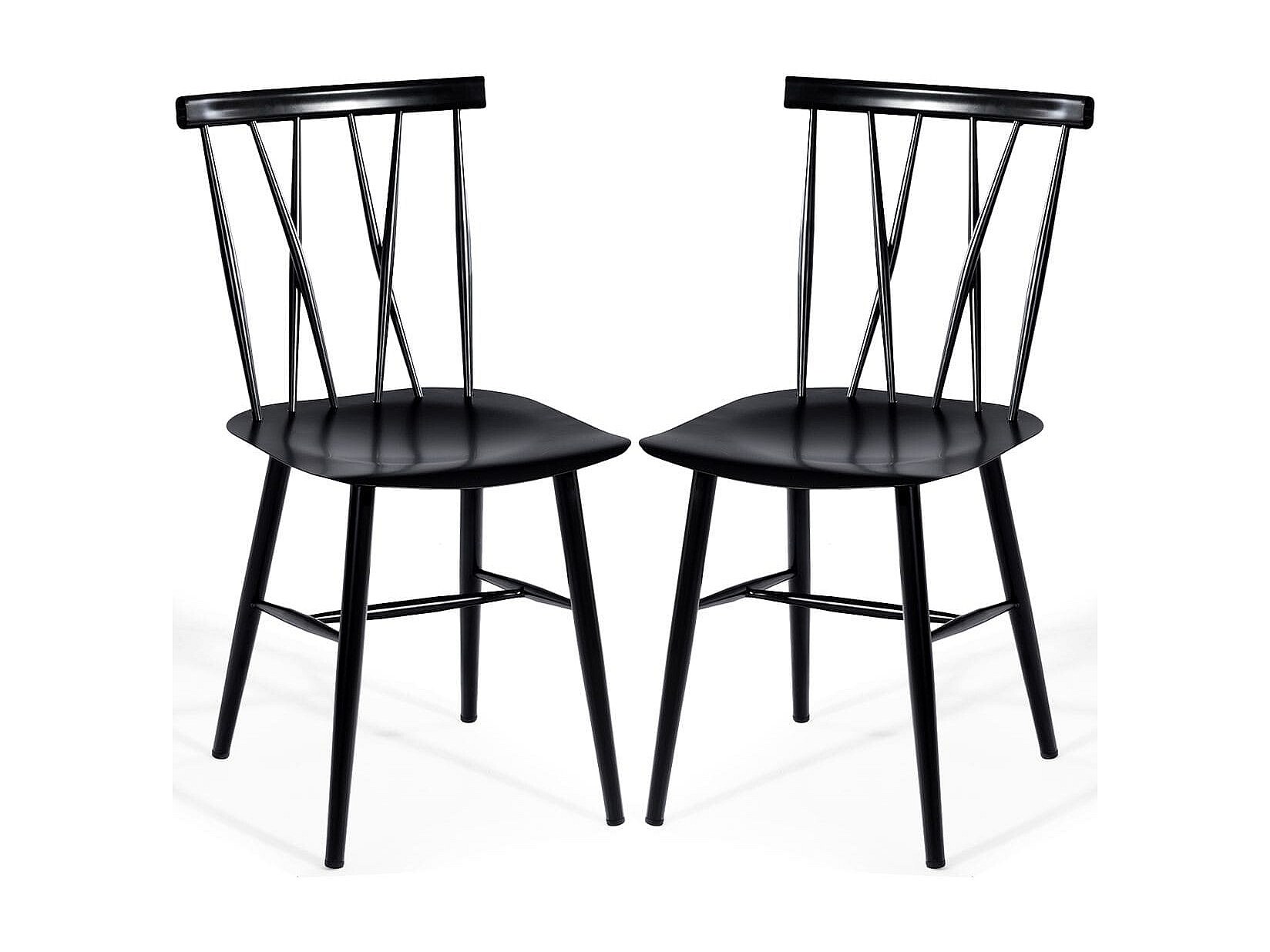 Lot de 2 Chaises de Salle à Manger En Métal Lot de 2 Chaises de Cuisine Modernes avec Haut Dossier et Siège Incurvé Embouts Antidérapants Noir