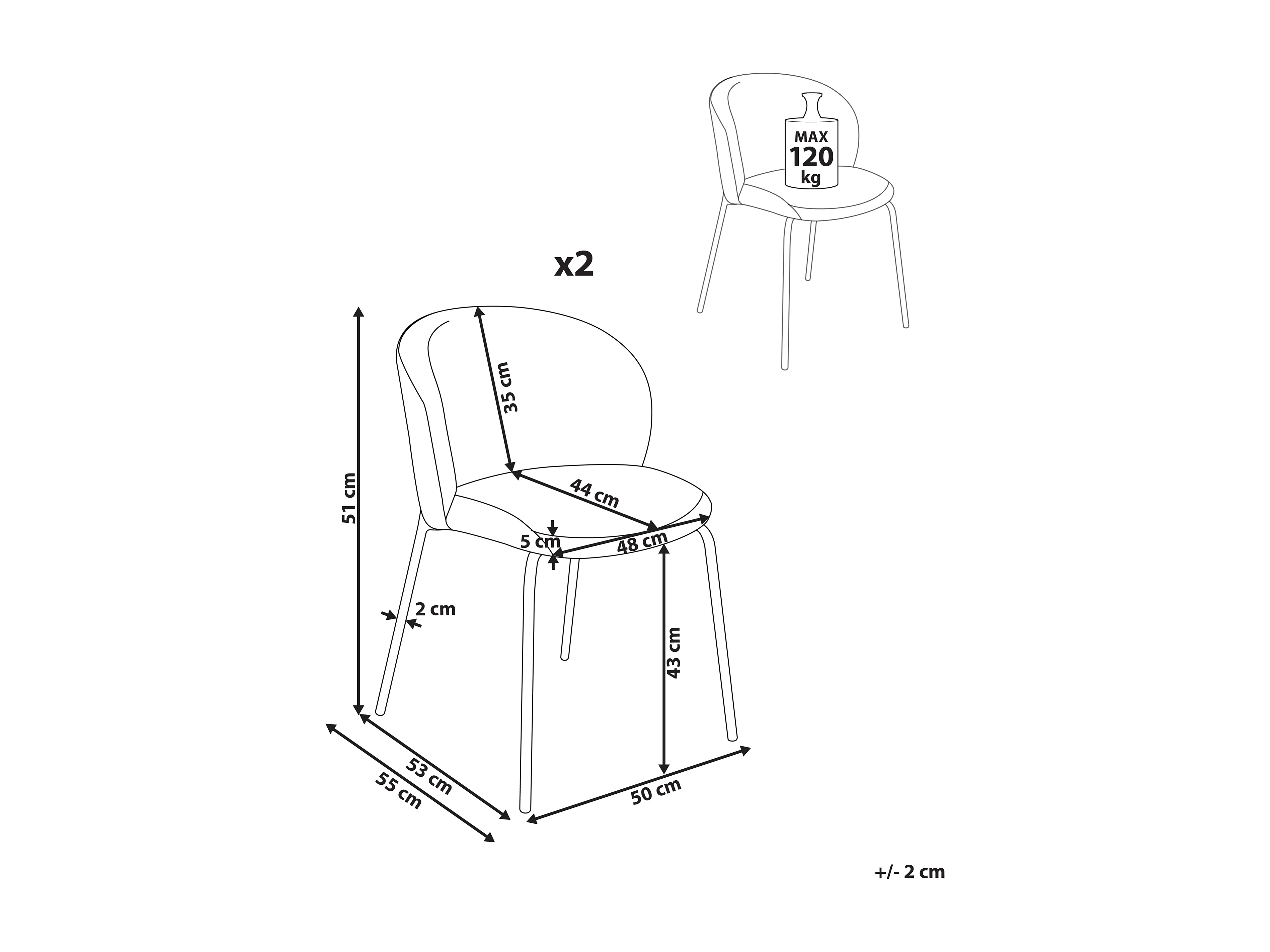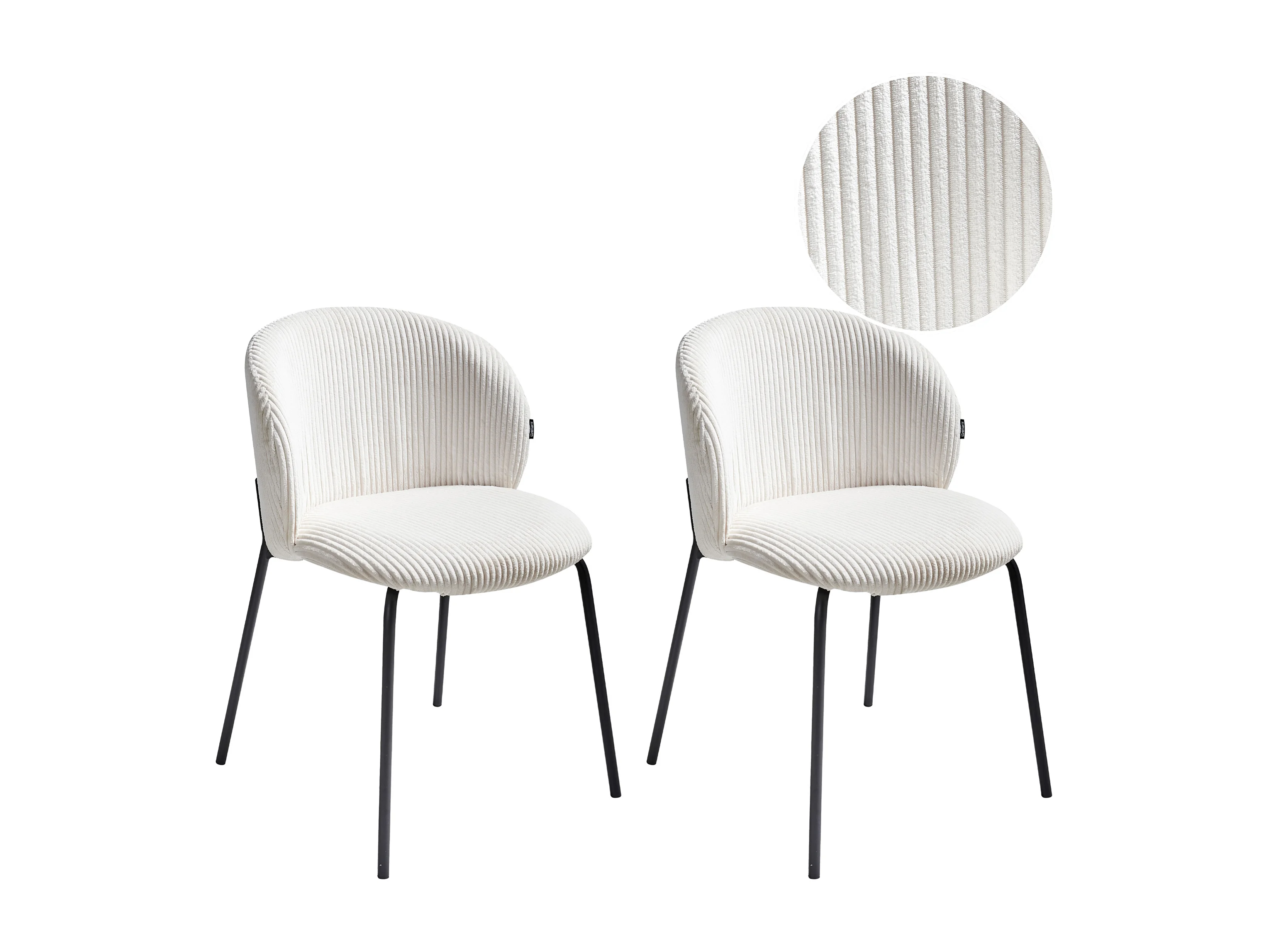 Lot de 2 chaises de salle à manger MILES Velours côtelé Blanc cassé