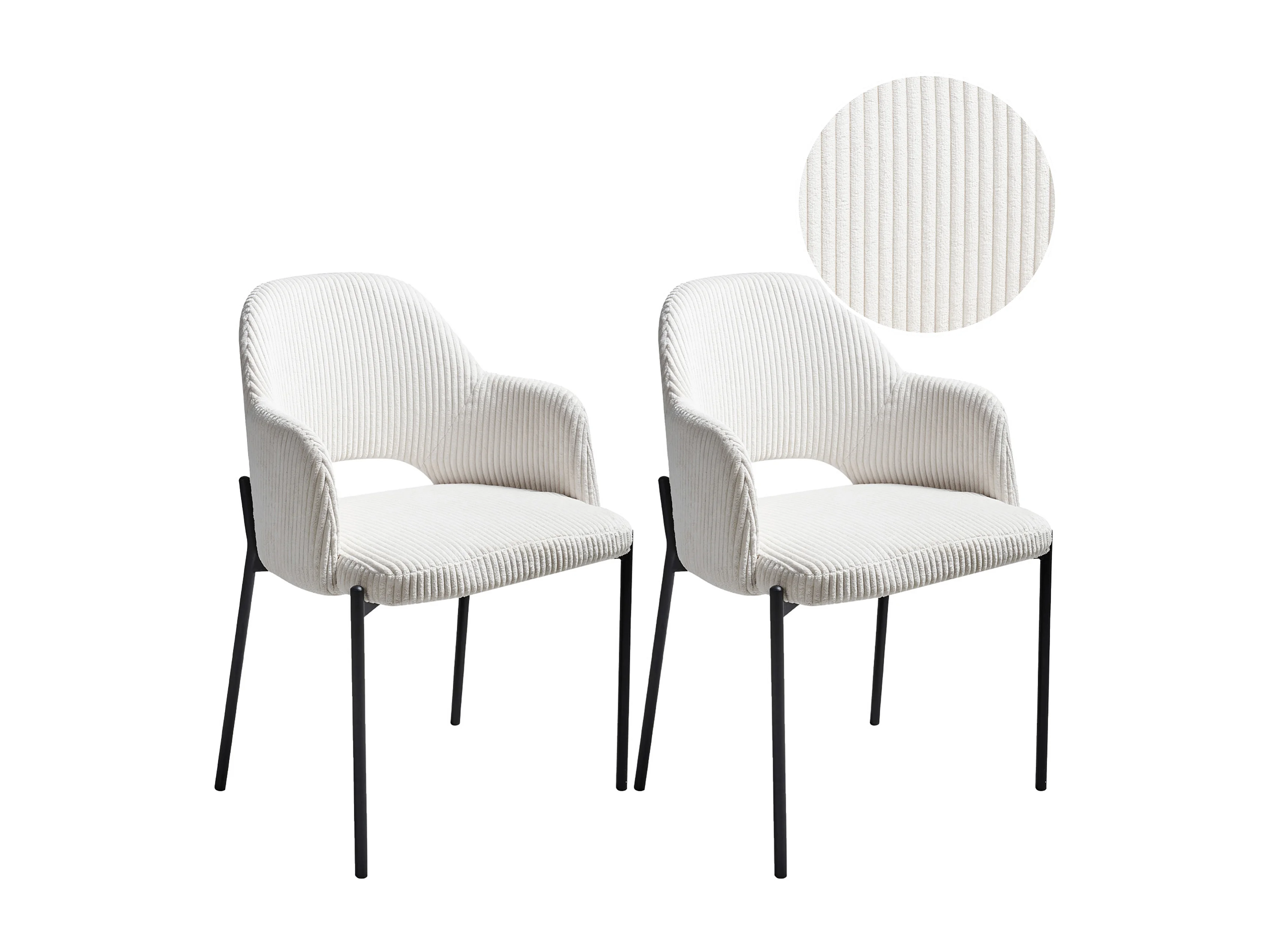 Lot de 2 chaises de salle à manger MILES Velours côtelé Blanc cassé