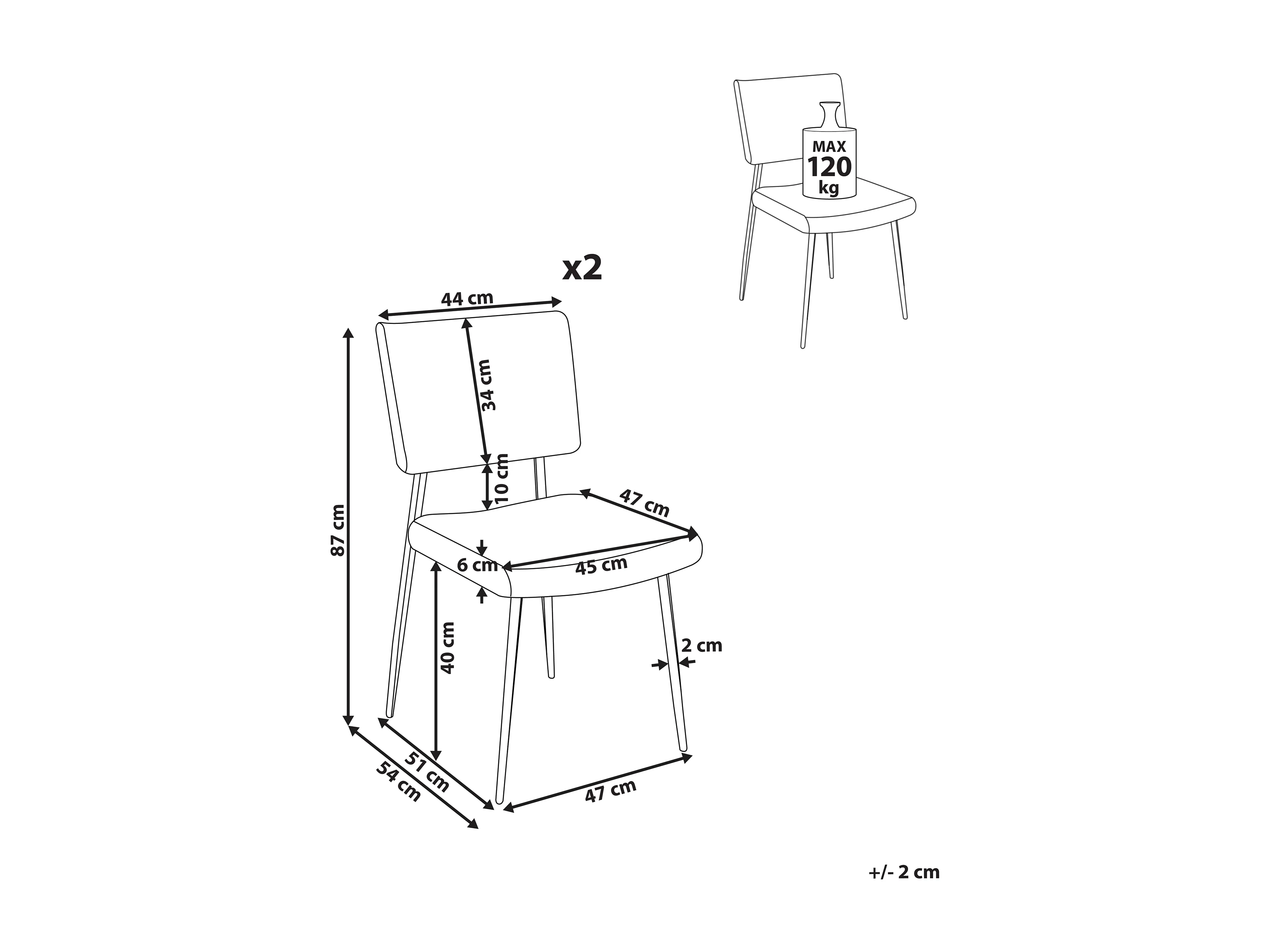 Lot de 2 chaises de salle à manger MILES Velours côtelé Blanc cassé