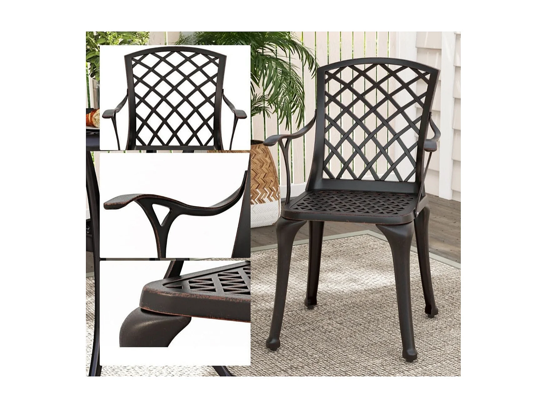 2 Chaises en Fonte d'Aluminium Chaises de Salle à Manger Toutes Saisons Accoudoirs et Sièges Incurvés Fauteuils Bistrot en Métal Bronze