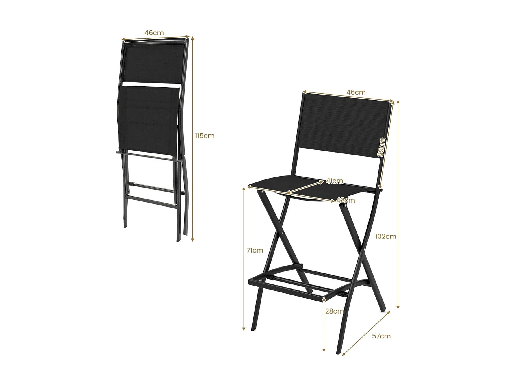 Table de Jardin Bistro Pliante φ46x47cm en Verre&Acier pour Intérieur Extérieur Patio Balcon Terrasse Charge 50 kg Noir