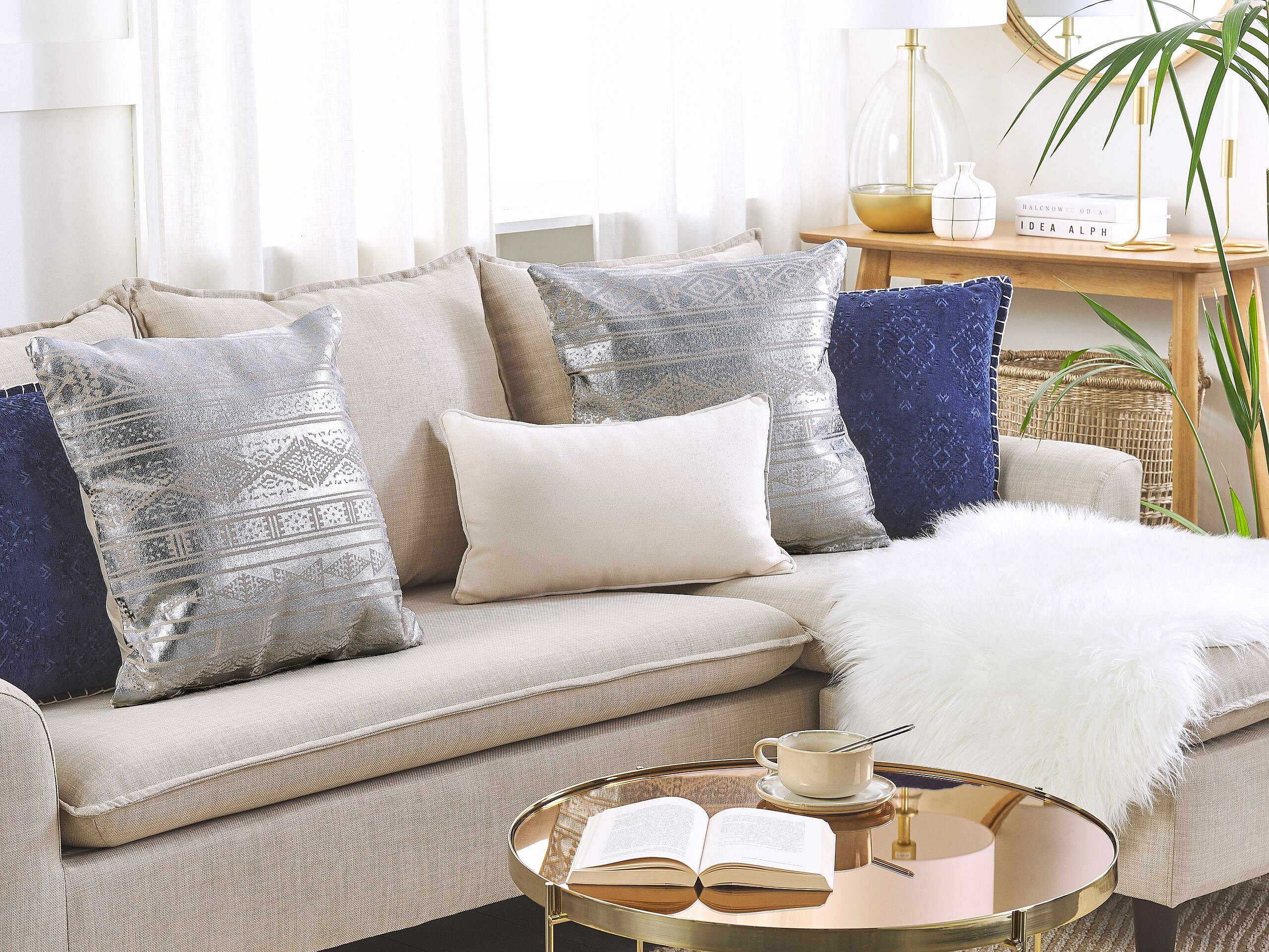 Lot de 2 coussins décoratifs OUJDA Coton 50 x 50 cm Argenté Motif géométrique