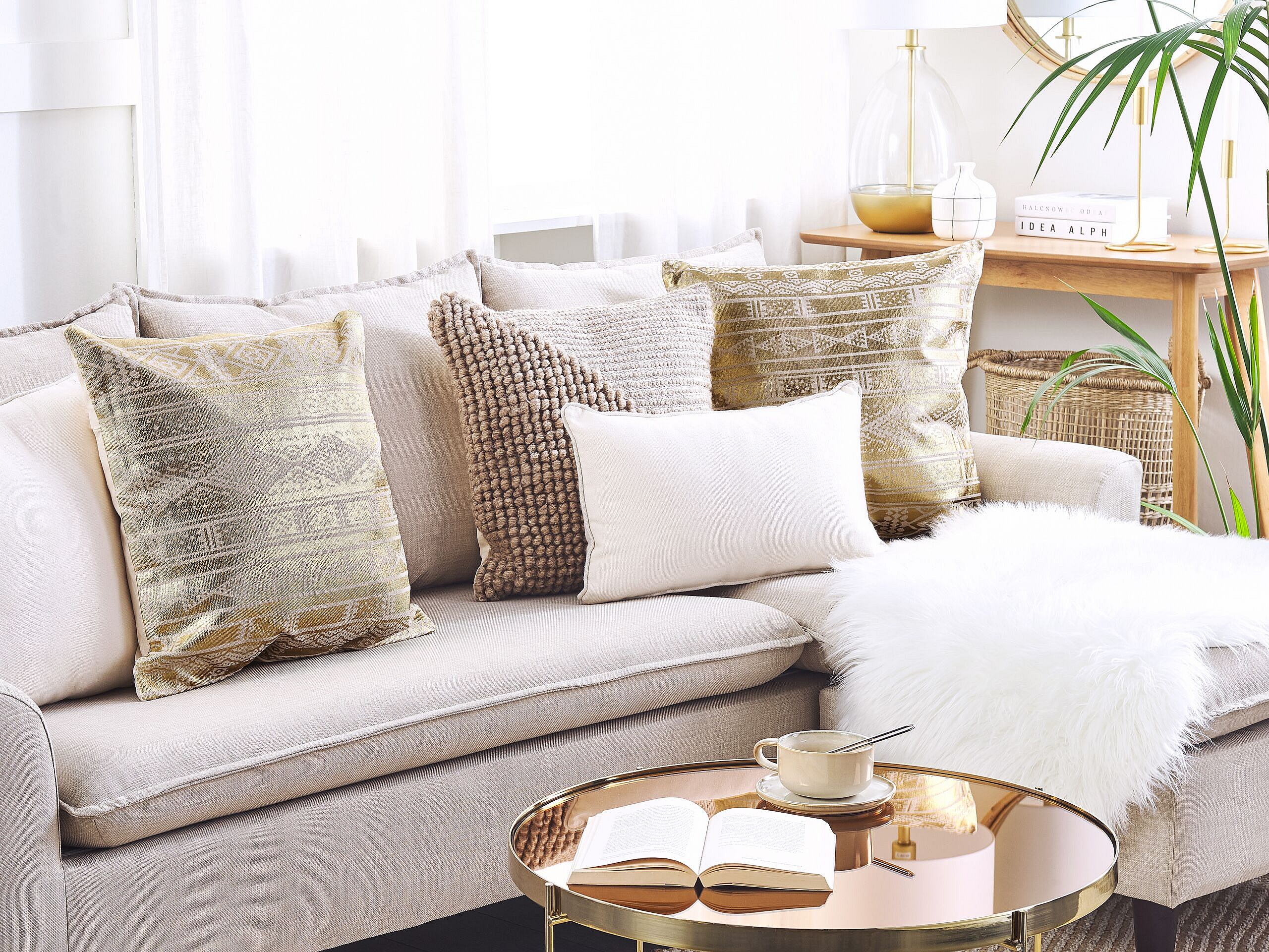 Lot de 2 coussins décoratifs OUJDA Coton 50 x 50 cm Doré Motif géométrique