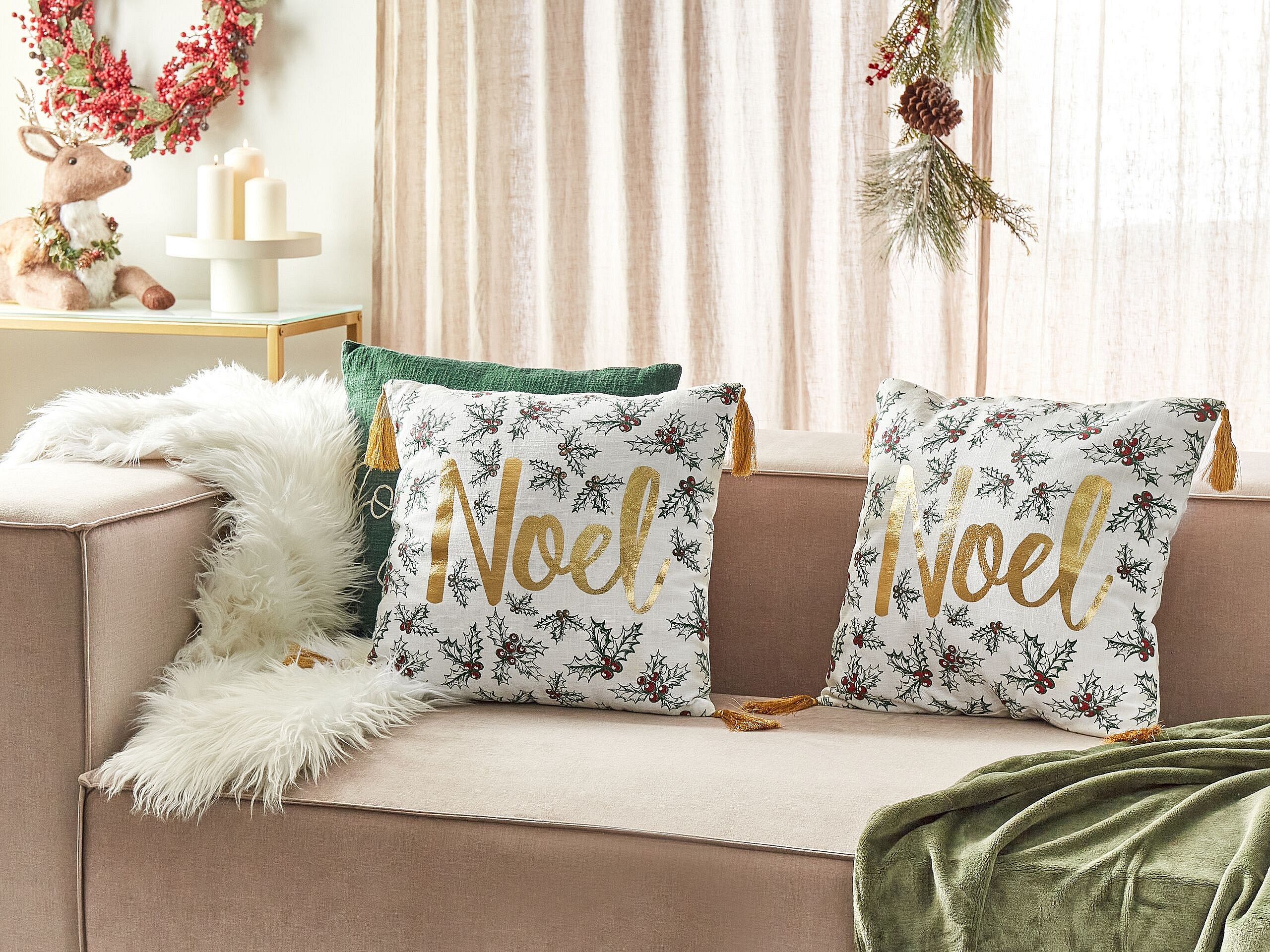 Lot de 2 coussins décoratifs ZAMIA Coton 45 x 45 cm Blanc Motif de Noël
