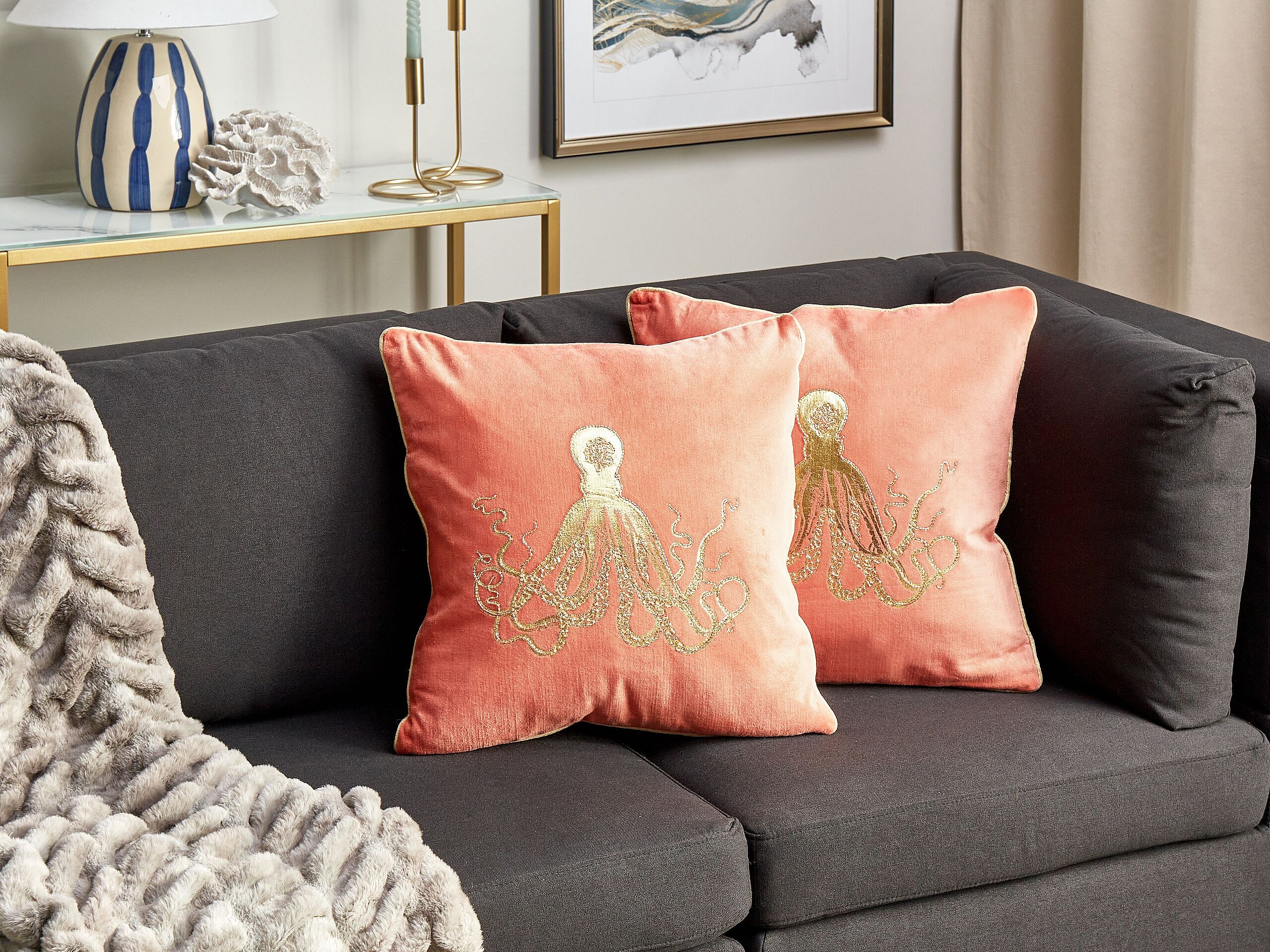 Lot de 2 coussins décoratifs LAMINARIA Velours 45 x 45 cm Corail Motif animal