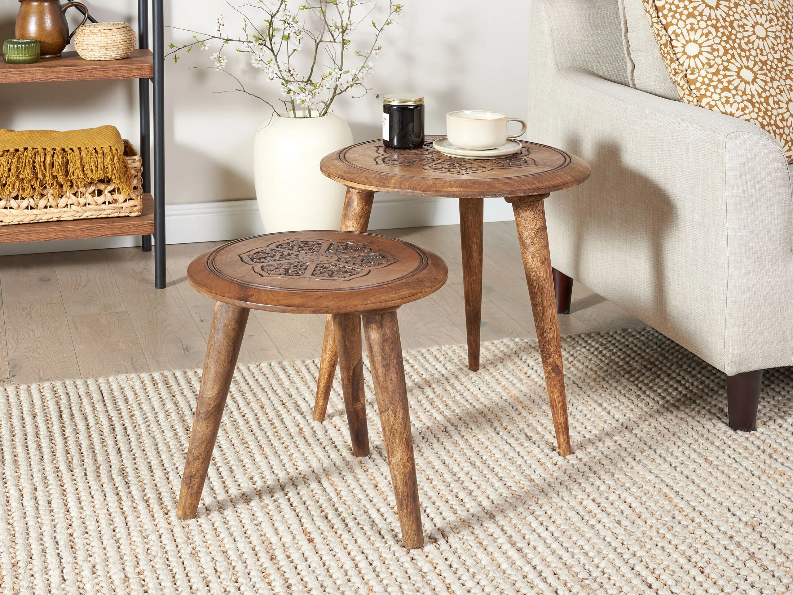 Lot de 2 tables d'appoint TURUA Bois de manguier Marron