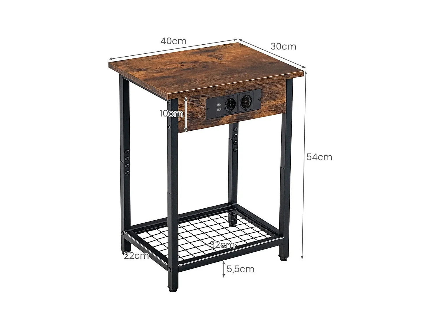 Lot de 2 Tables de Chevet avec Station de Charge & Étagère Ouverte Table D'appoint à 2 Niveaux 2 Ports 2 Usb Pour Salon Chambre Café