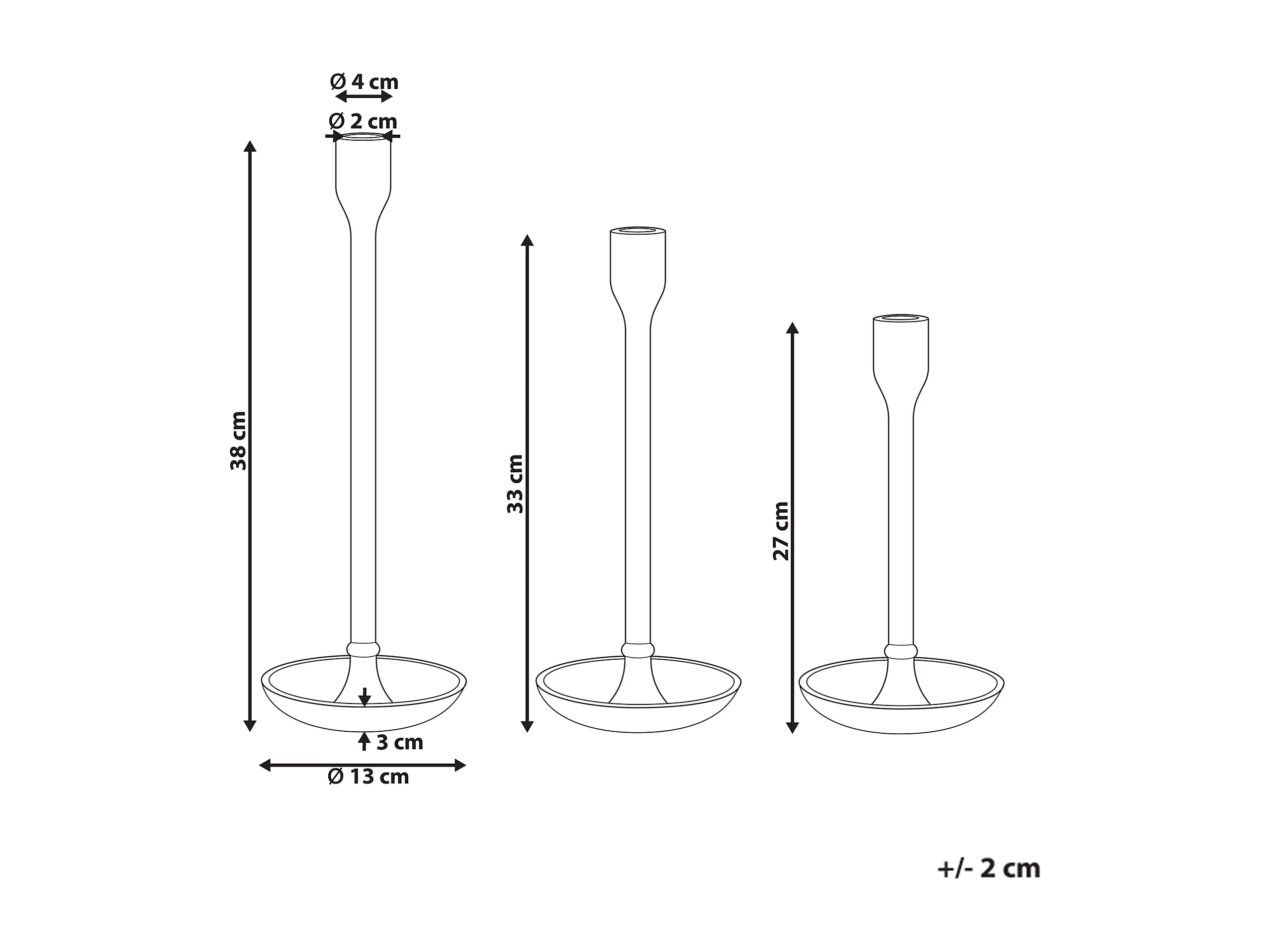 Lot de 3 bougeoirs LIWUNG Métal 27/33/38 cm Doré