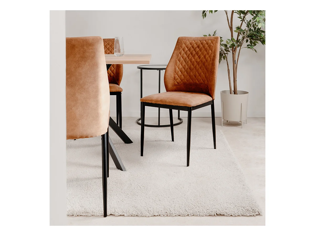 Ensemble de 4 chaises en simili cuir camel et pieds en métal noir - BRUXELLES