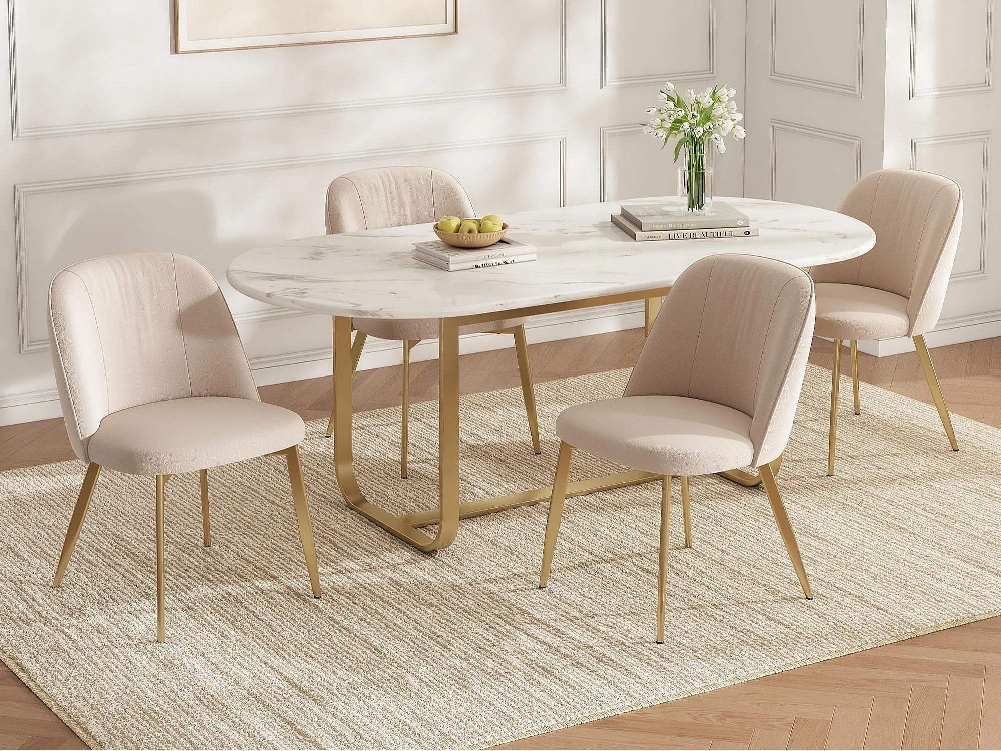Lot de 4 chaises modernes - Dossier confortable - Pieds en métal - Revêtement en velours - Beige