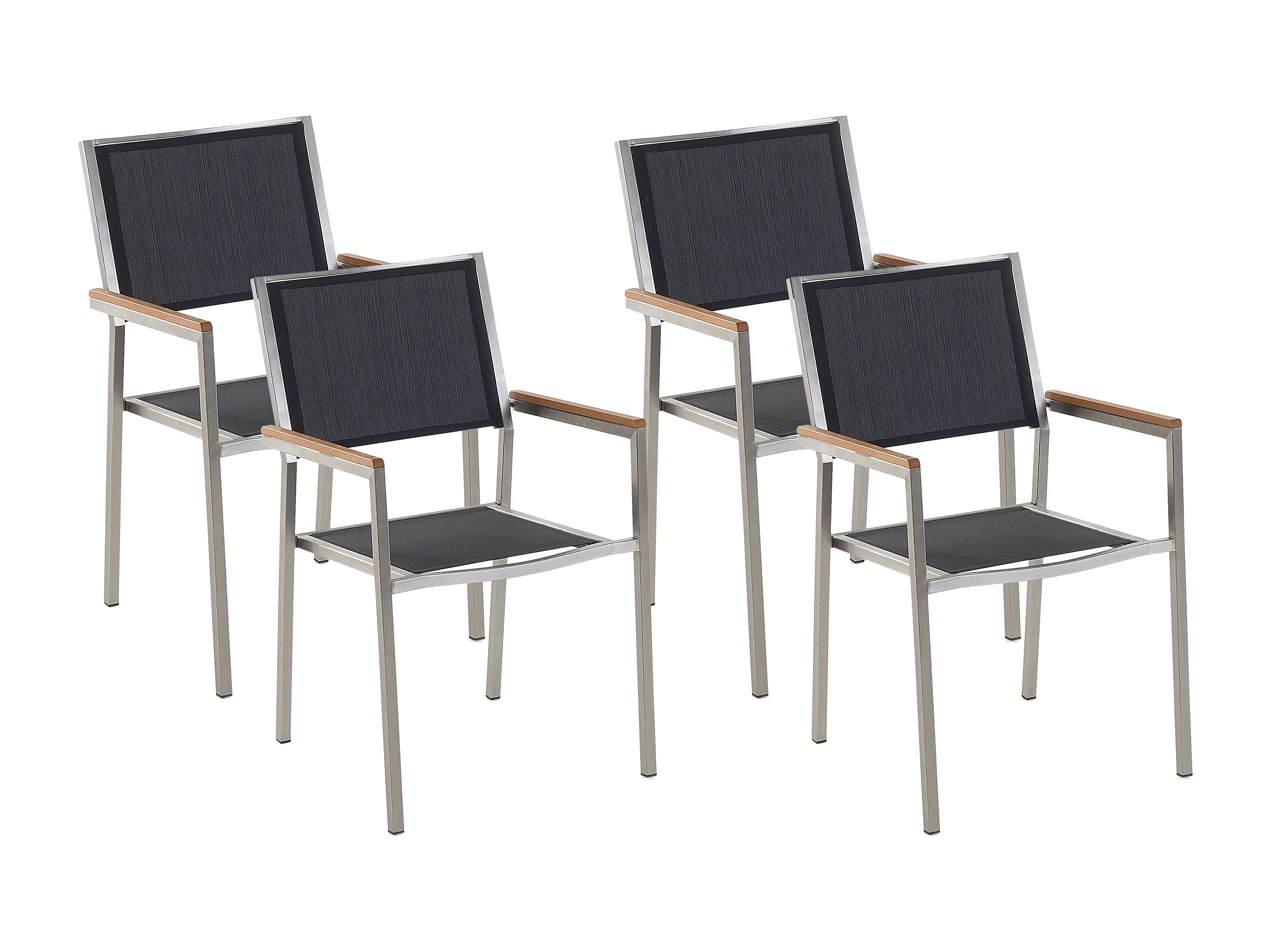 Lot de 4 chaises de jardin GROSSETO Acier inox Noir