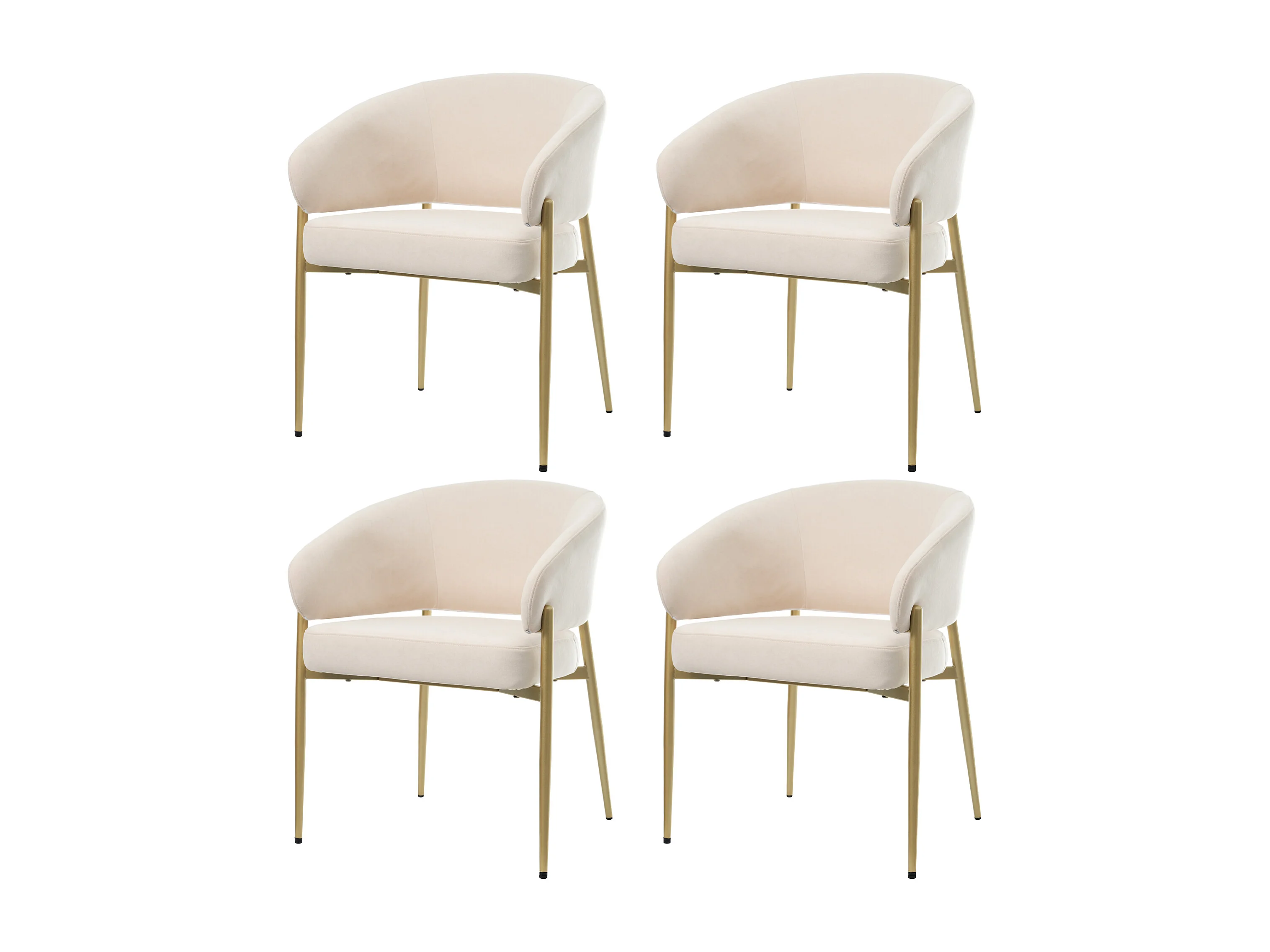 Lot de 4 chaises - Style moderne - Coussins d'assise rembourrés - Pieds en métal - Tissu velours - Beige