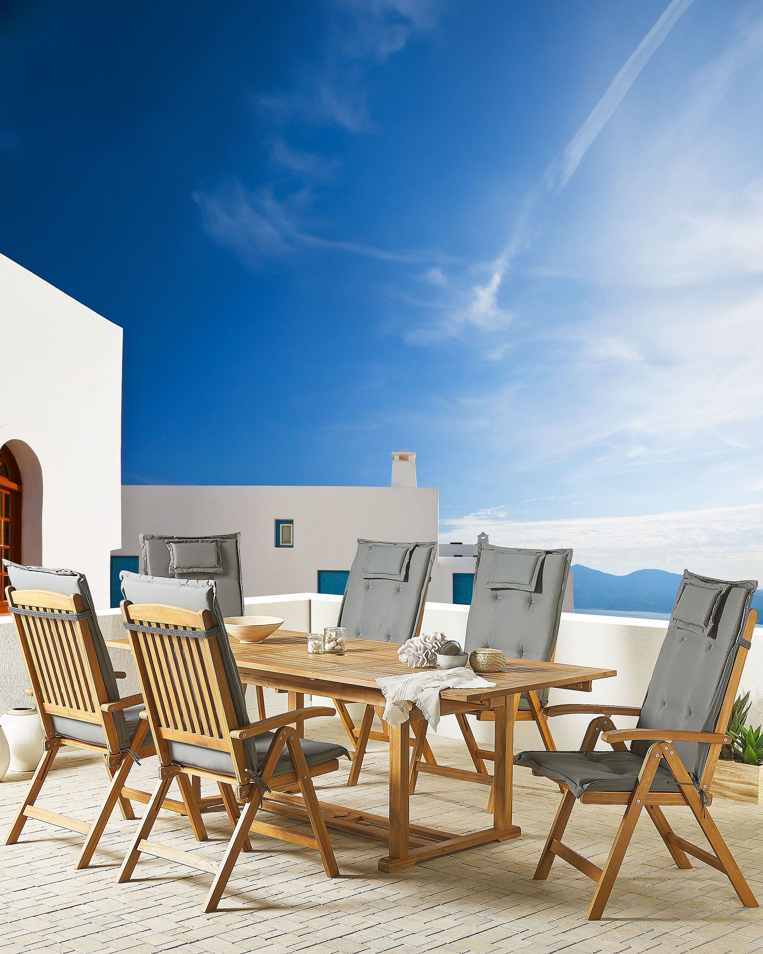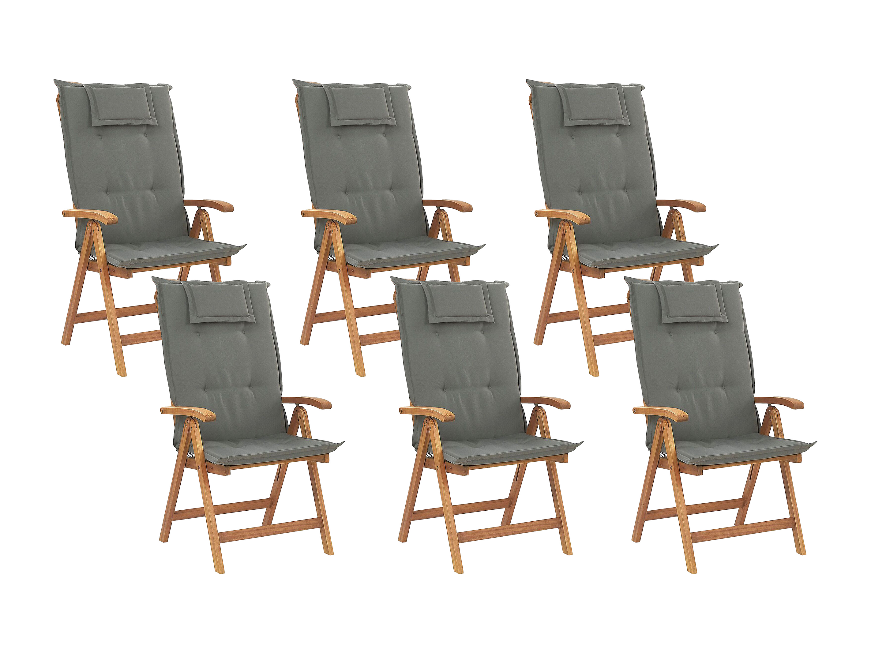 Lot de 6 chaises de jardin avec coussins JAVA Acacia Gris graphite