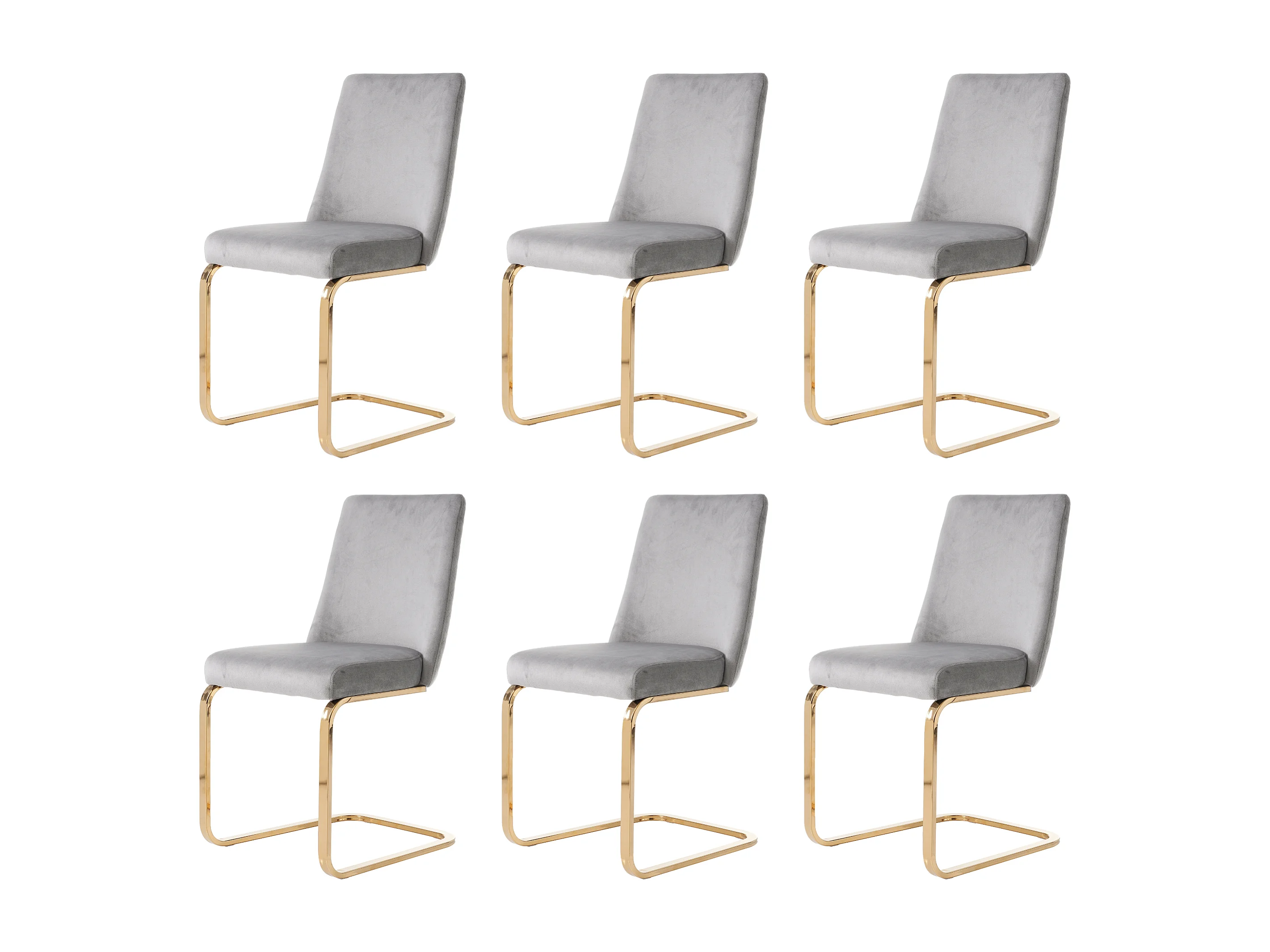 Lot de salon 6 chaises en velours de luxe - 88 x 52 x 45 cm - dossier en diamant - pieds en métal doré - gris