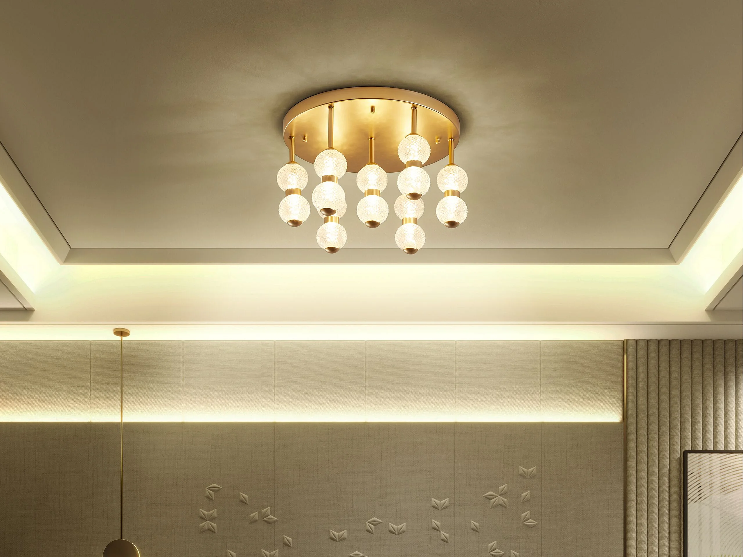 Suspension lustre et plafonnier doré