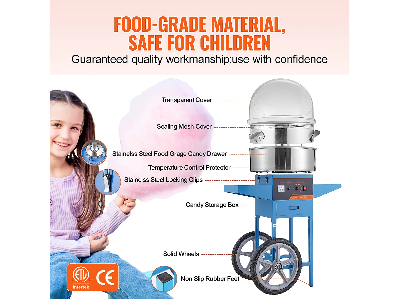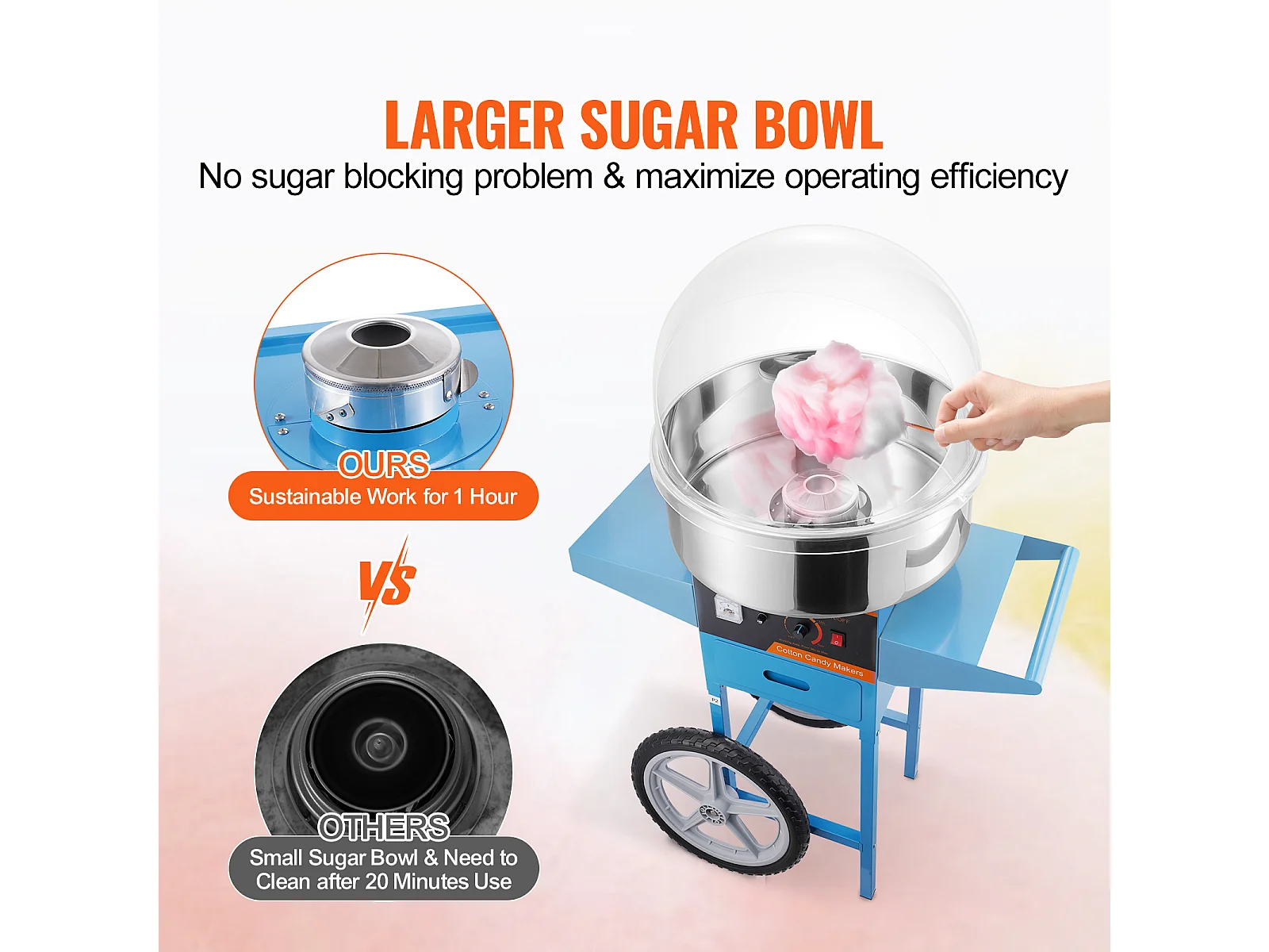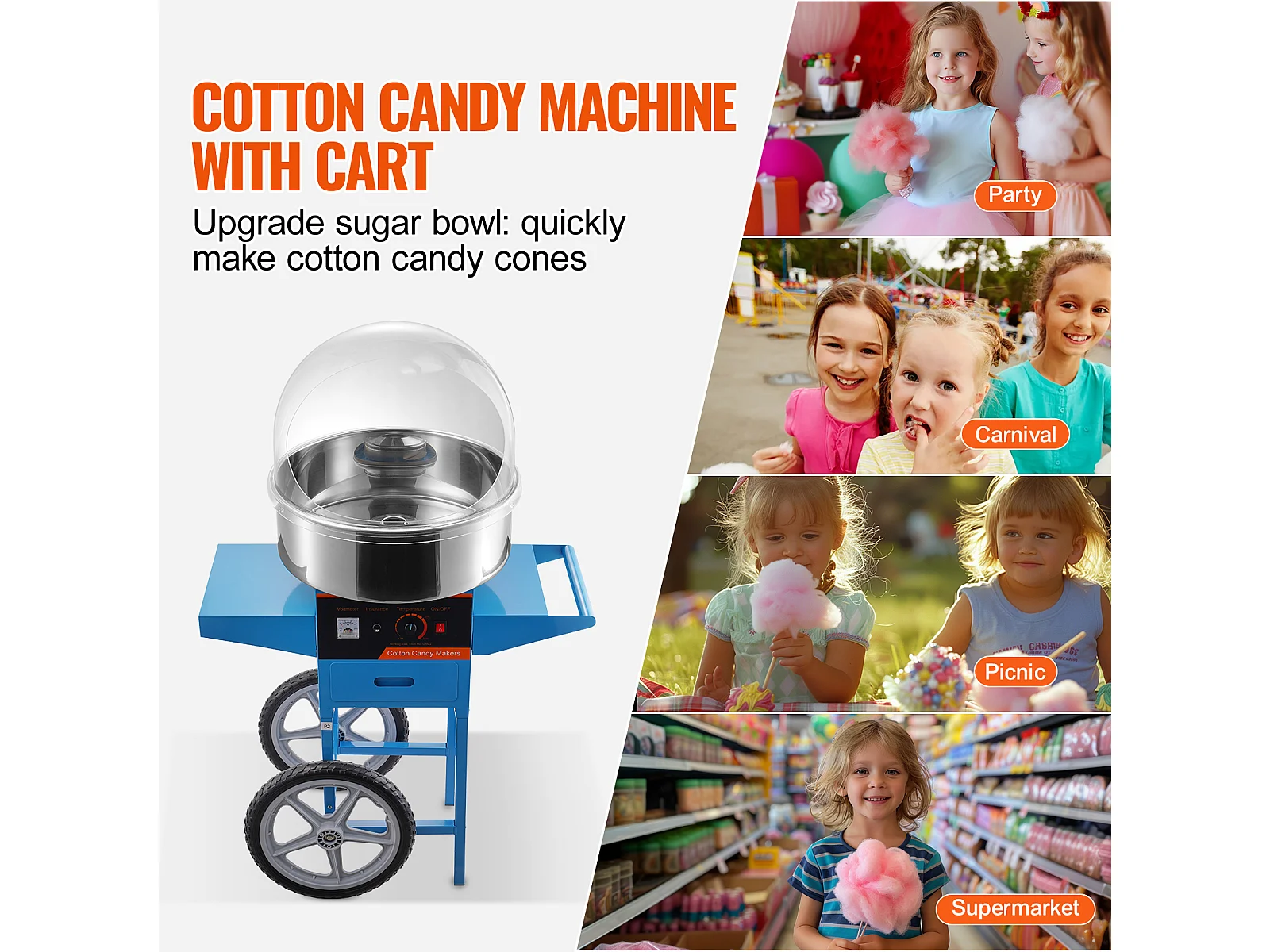 Machine à Barbe à Papa Commerciale SucceBuy, Machine à Barbe à Papa avec Chariot, Bleue