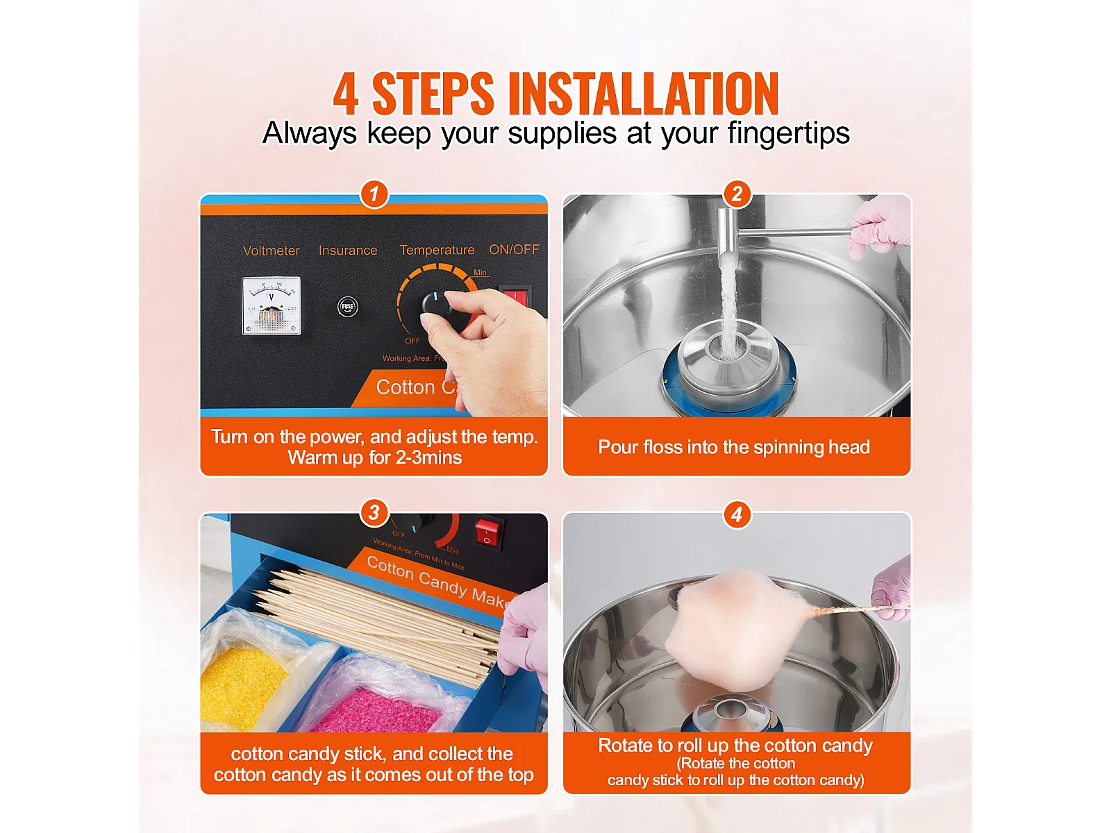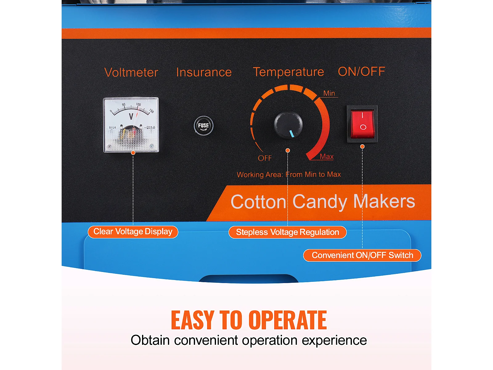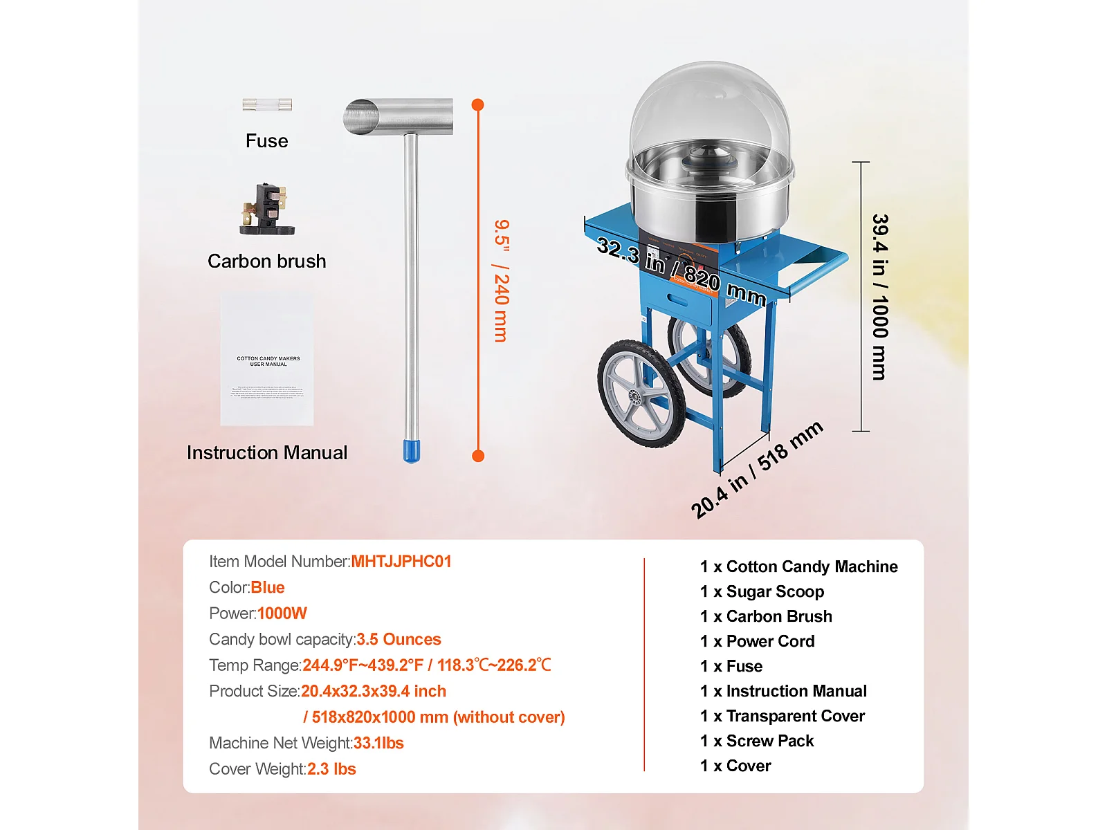 Machine à Barbe à Papa Commerciale SucceBuy, Machine à Barbe à Papa avec Chariot, Bleue