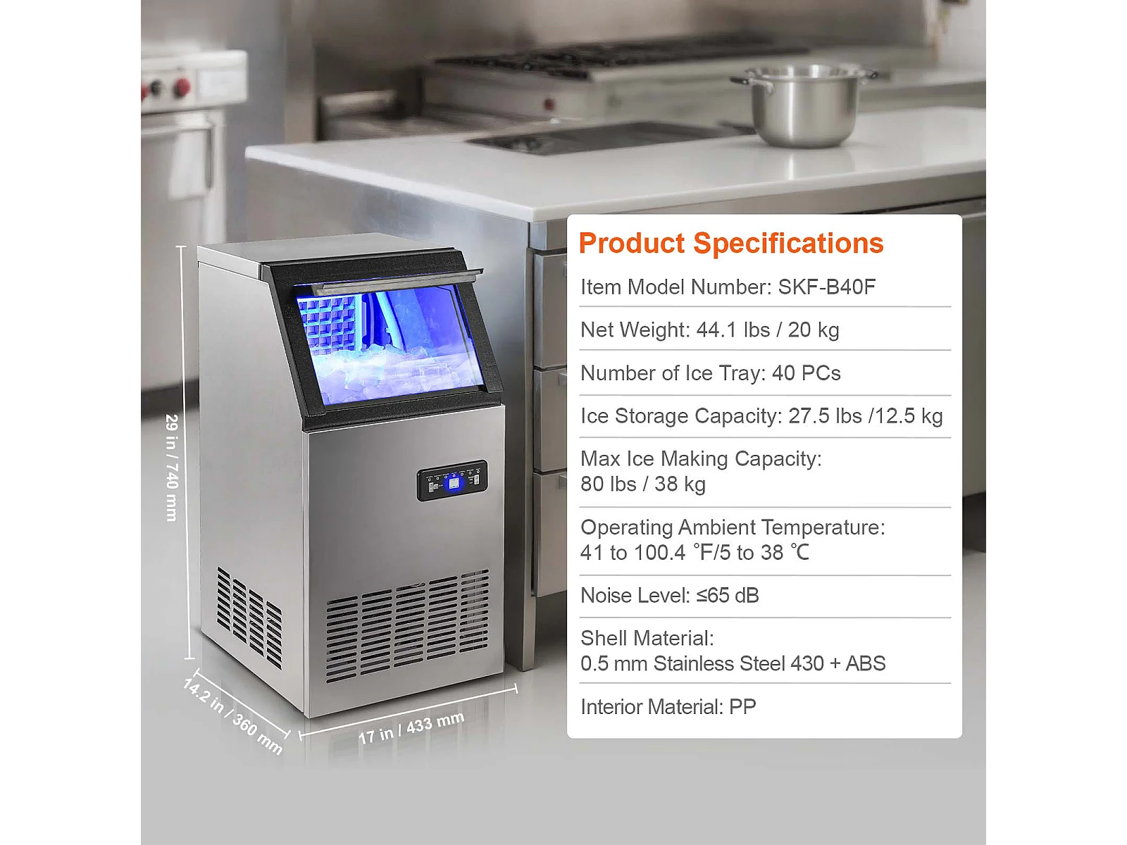 Machine à Glaçons SucceBuy Machine à Glaçons Commerciale 38 kg/24 h, Armoire Autonome, 40 Glaçons