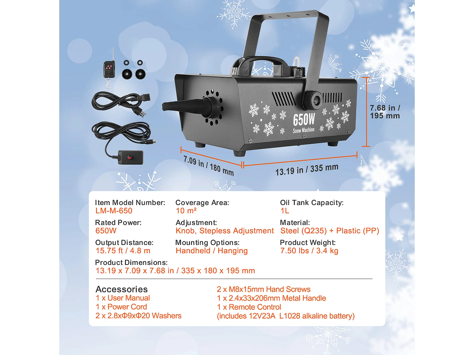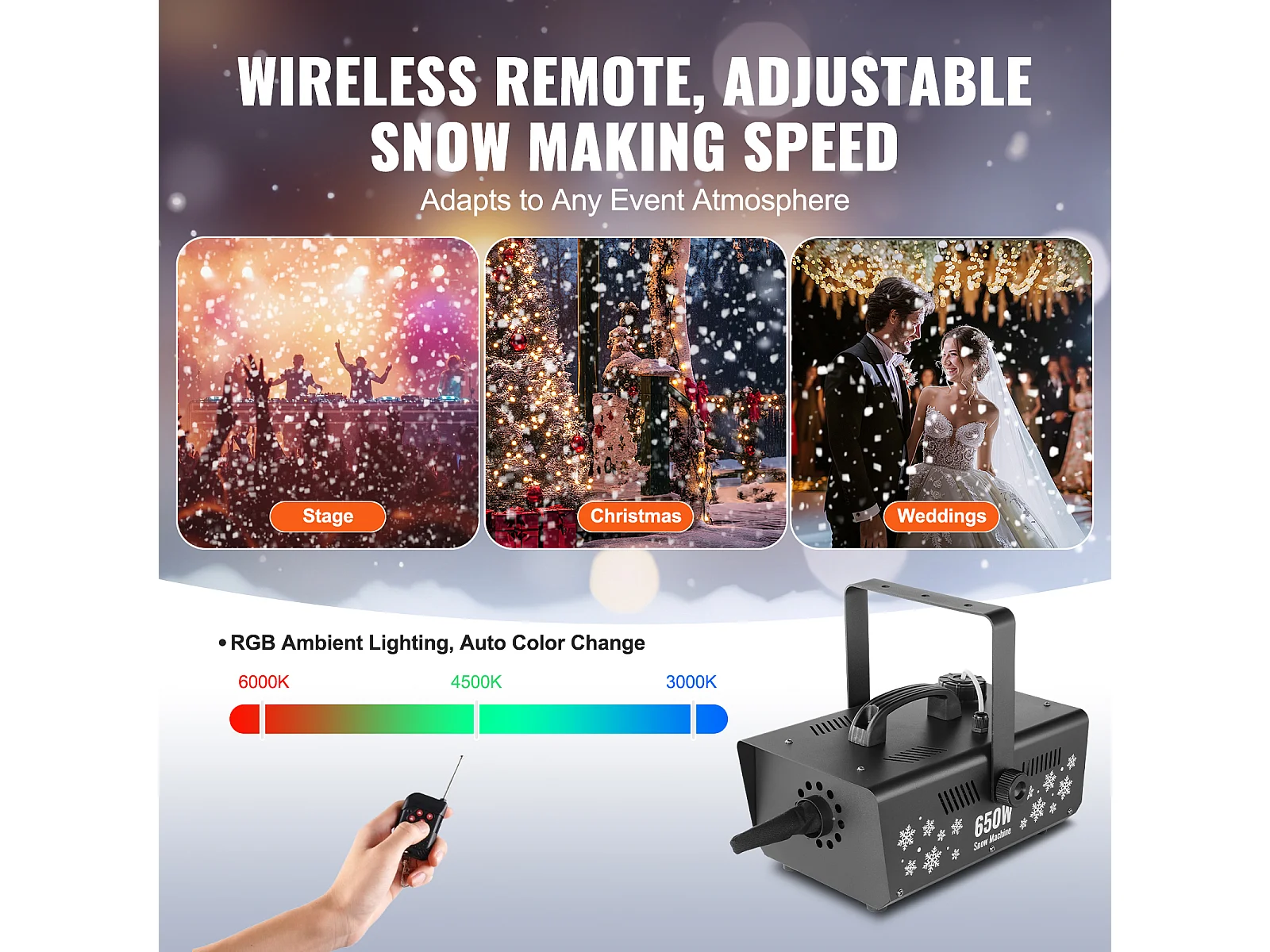 Machine à Neige SucceBuy 650 W pour les Vacances - Apporte la Magie de l'Hiver à Vos Célébrations Familiales