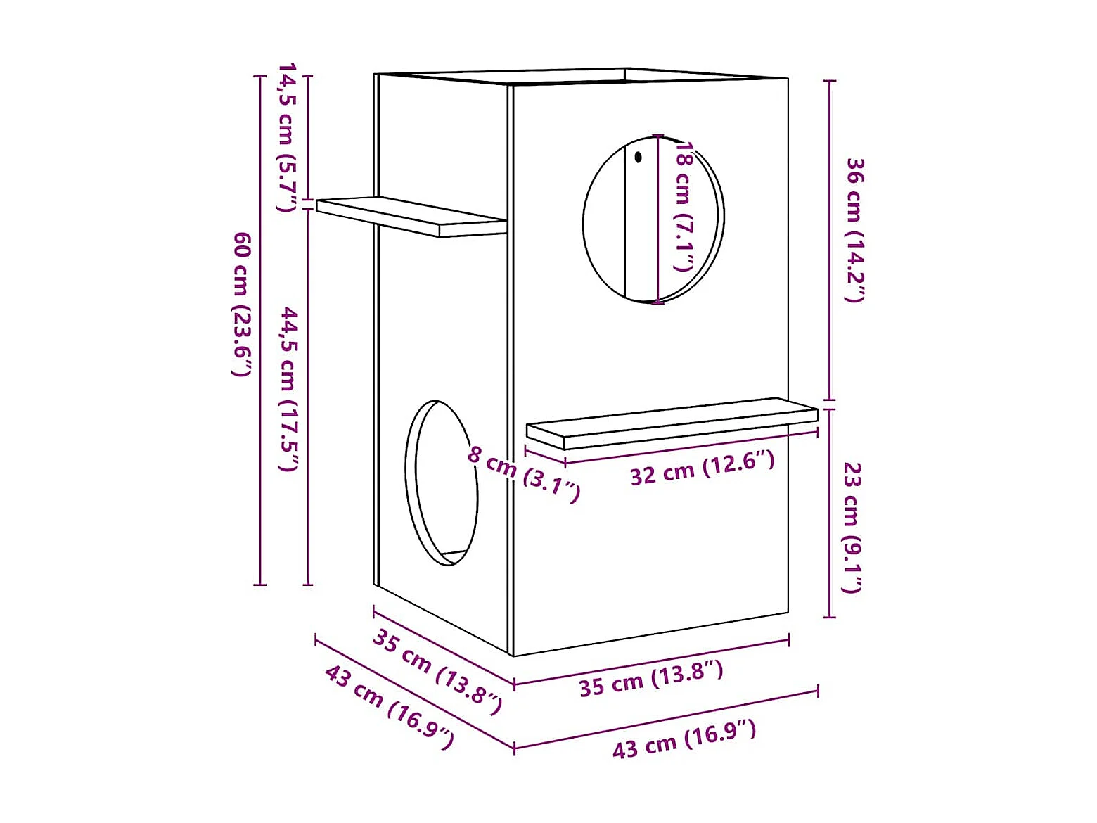 Maison pour chat blanc 43x43x60 cm bois de pin massif