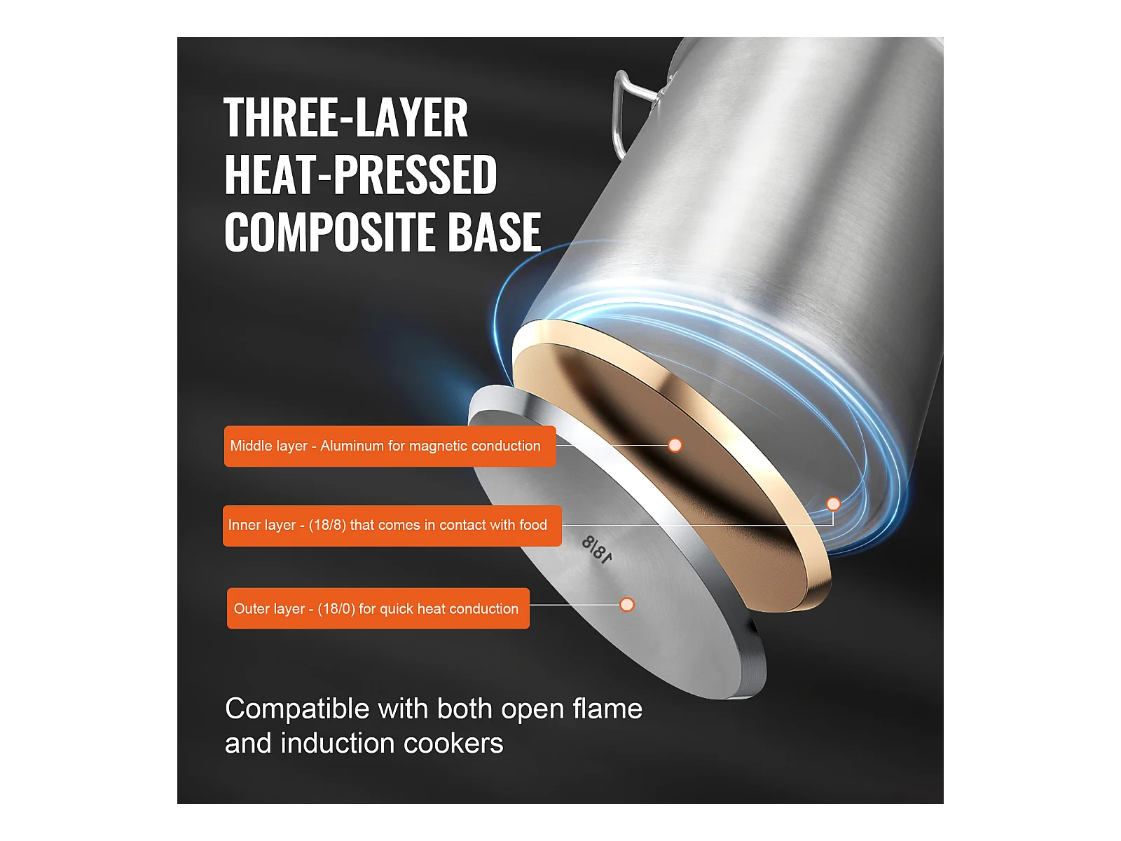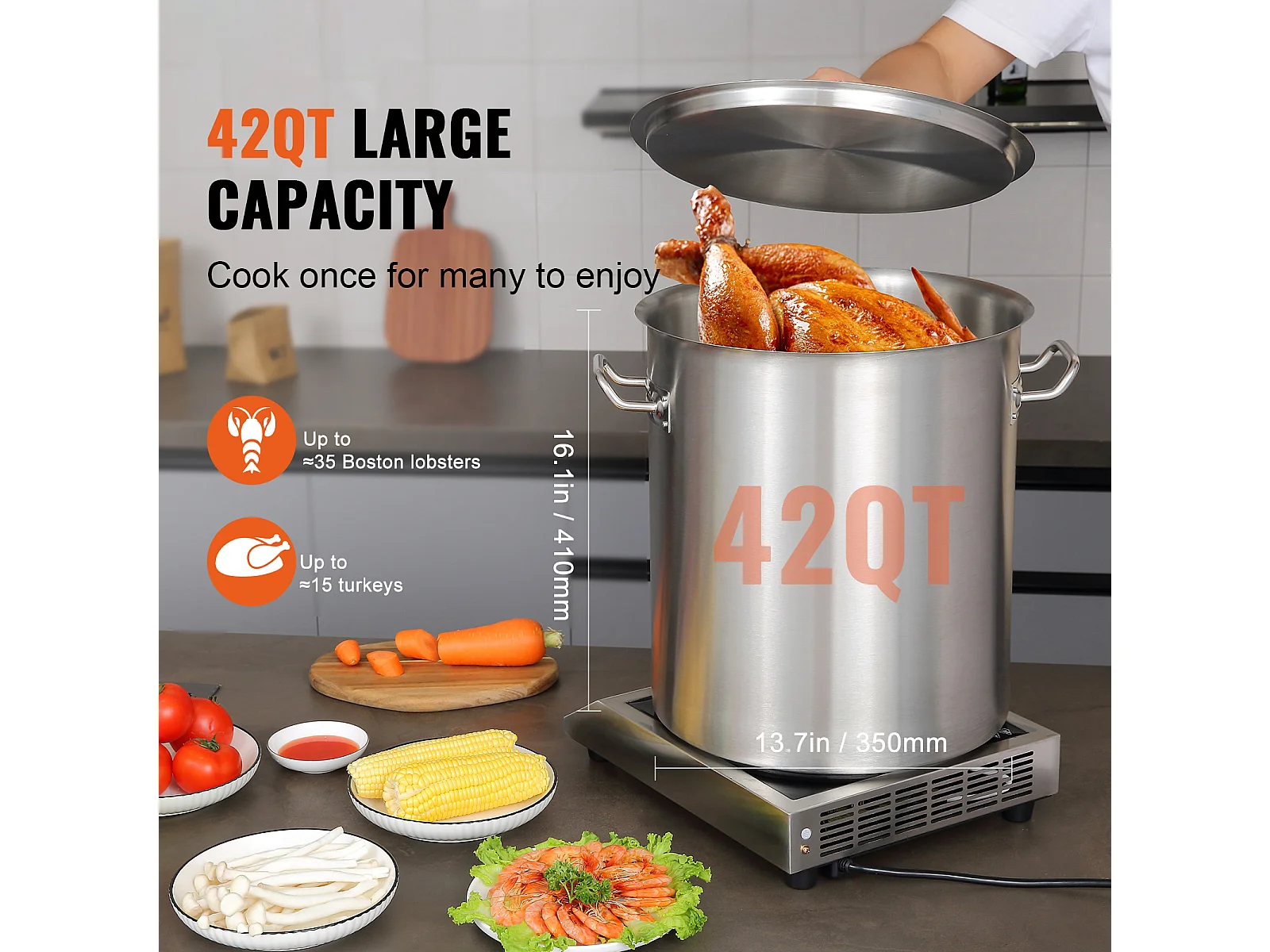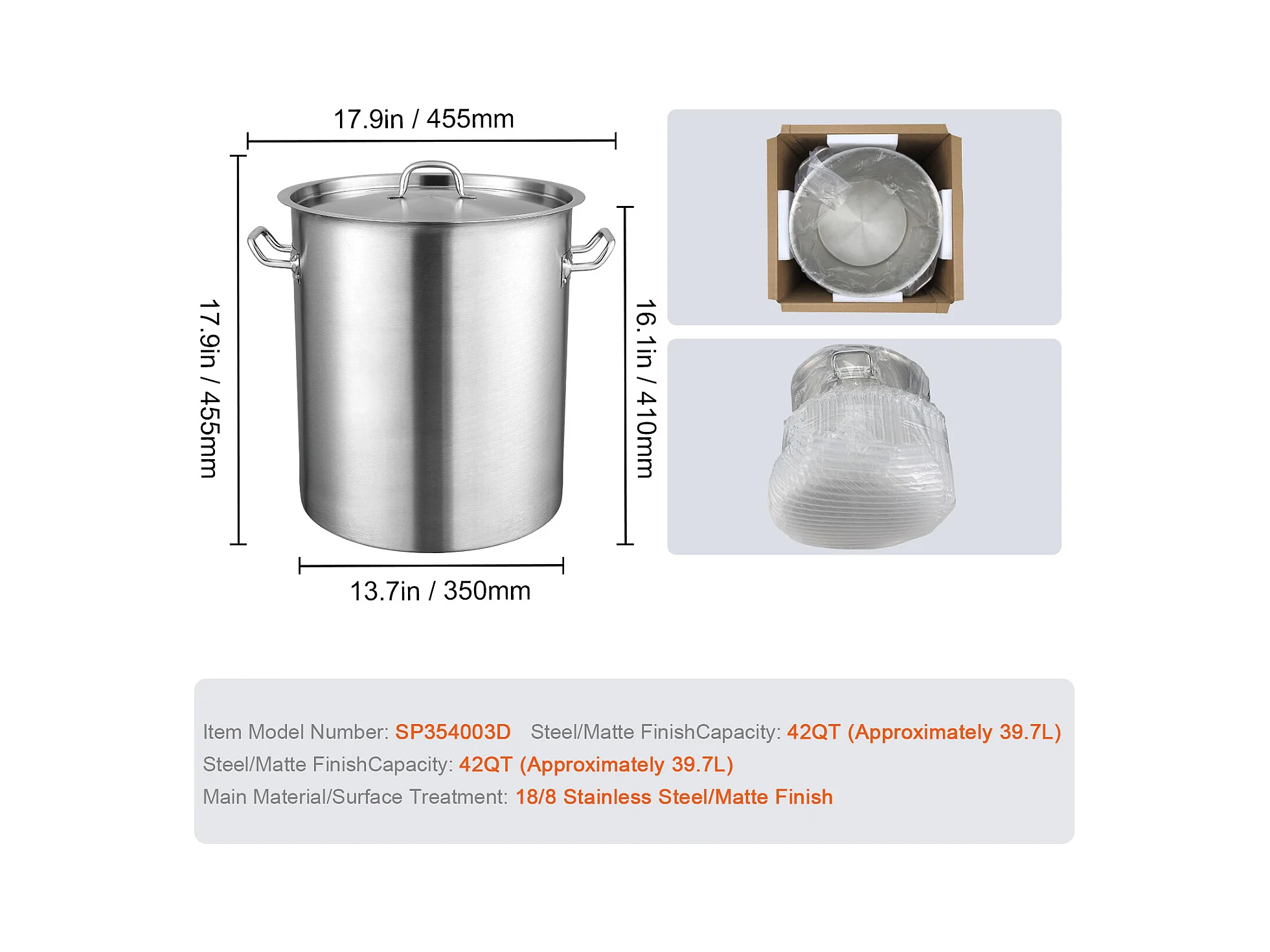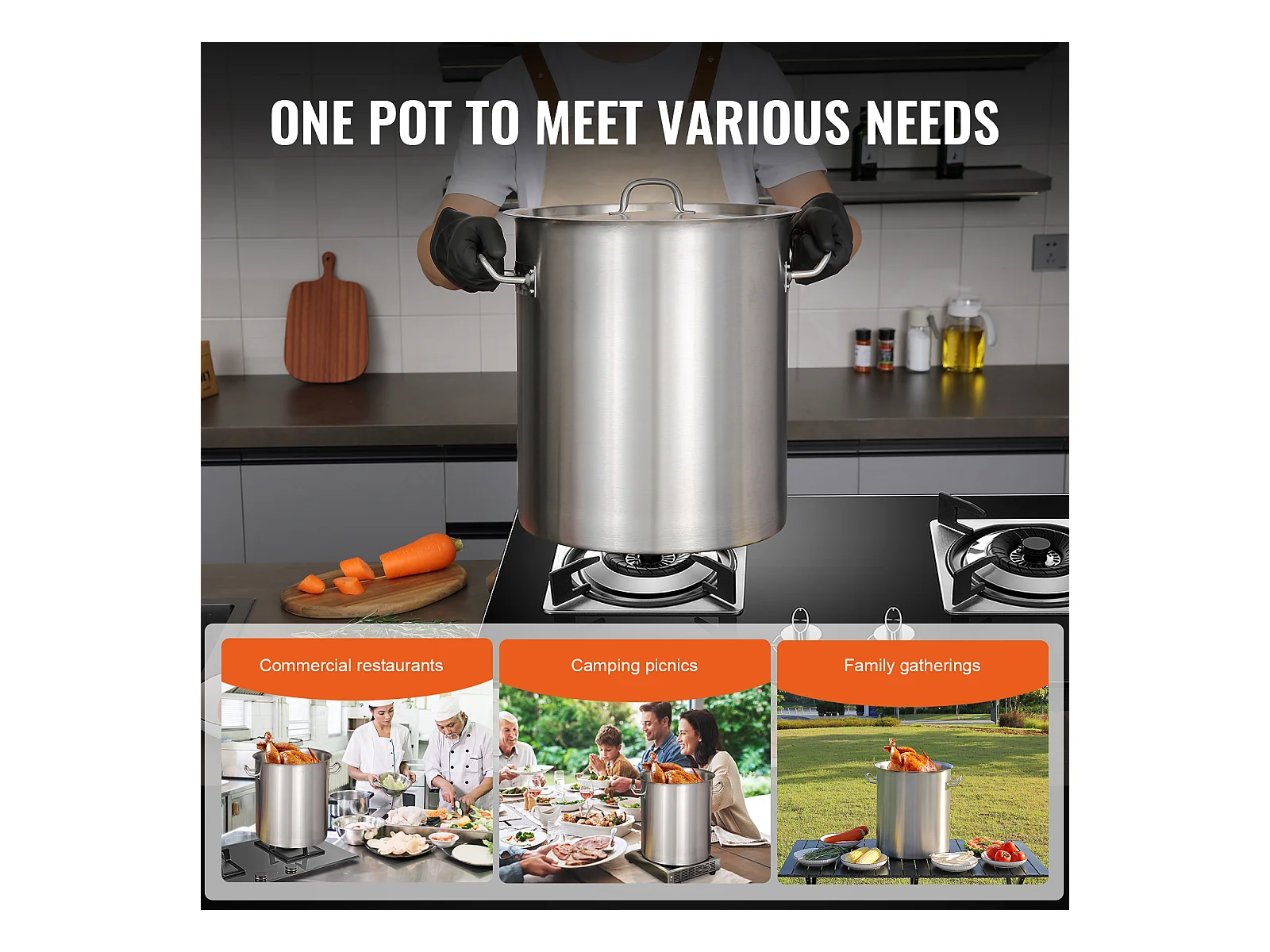 Marmite en Acier Inoxydable SucceBuy de 42 L - Grande Marmite de Cuisine avec Couvercle, Idéale pour Cuisson en Grande Quantité et Restauration