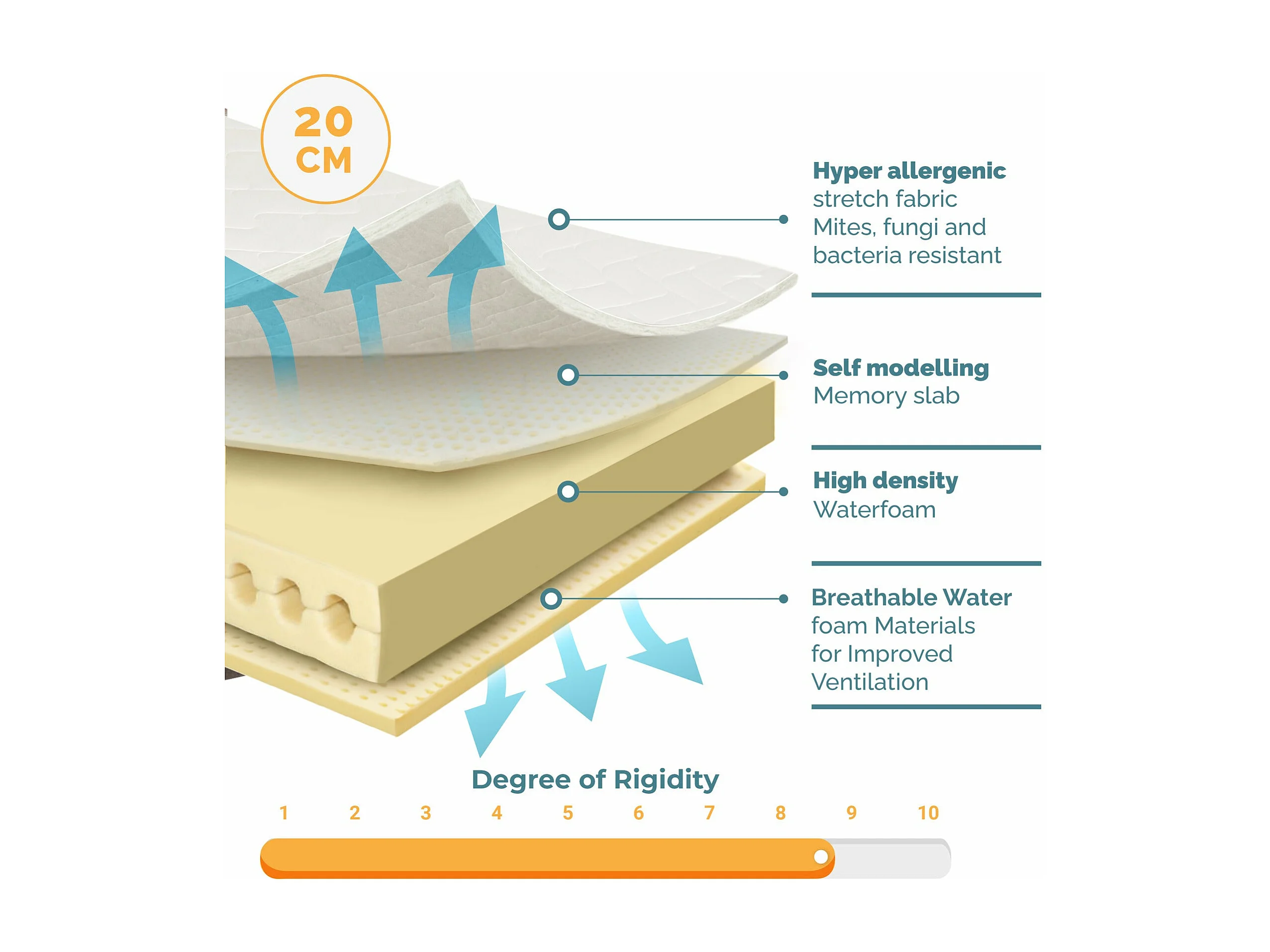 Matelas TANHK à mémoire 170x190, 20cm, Mi-ferme, Orthopédique, Hypoallergénique, Housse amovible, Fabriqué en Italie