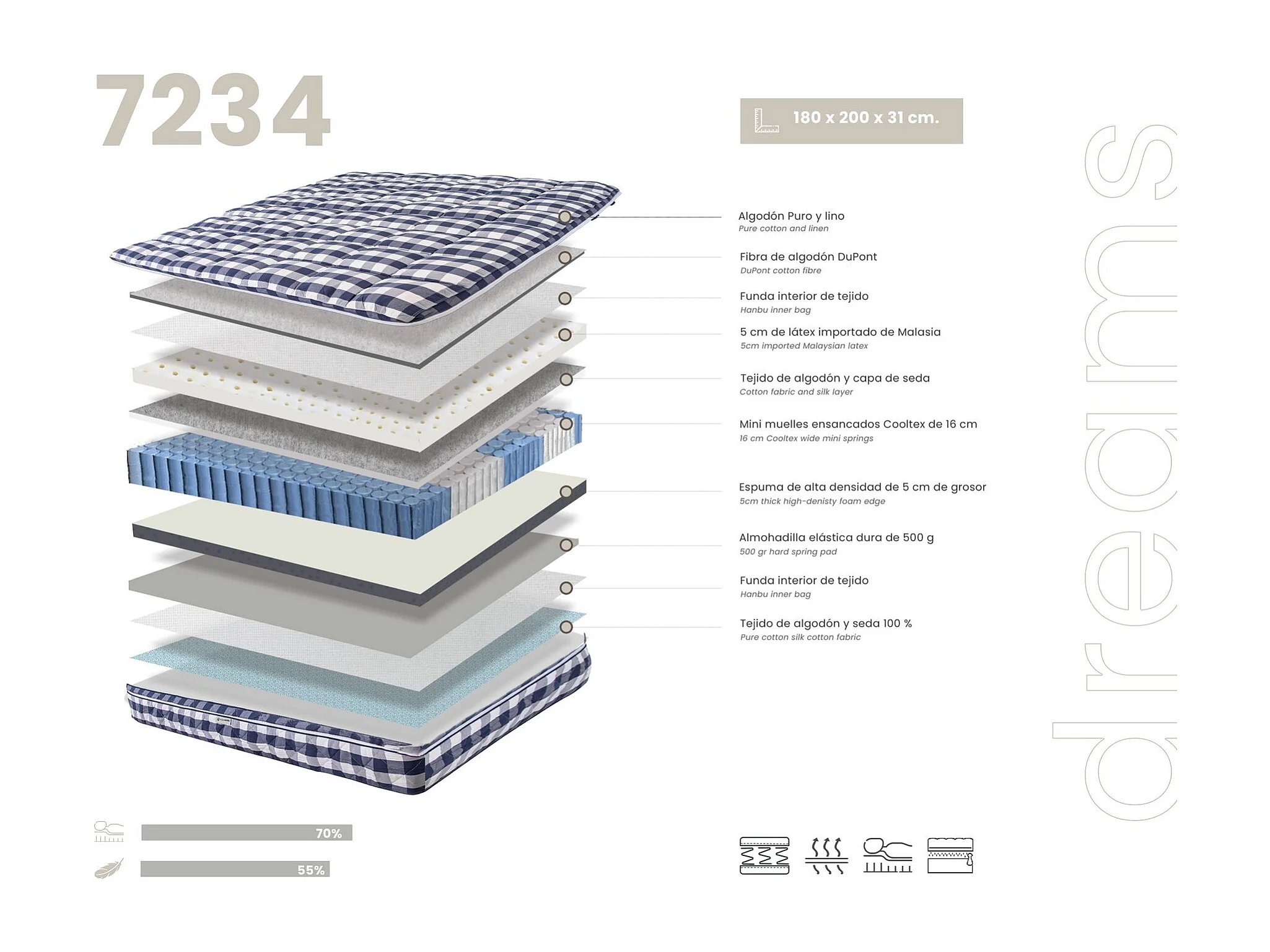 Matelas hybride en latex naturel avec mini ressorts ensachés Cooltex 180x200 7234 ANGEL CERDA