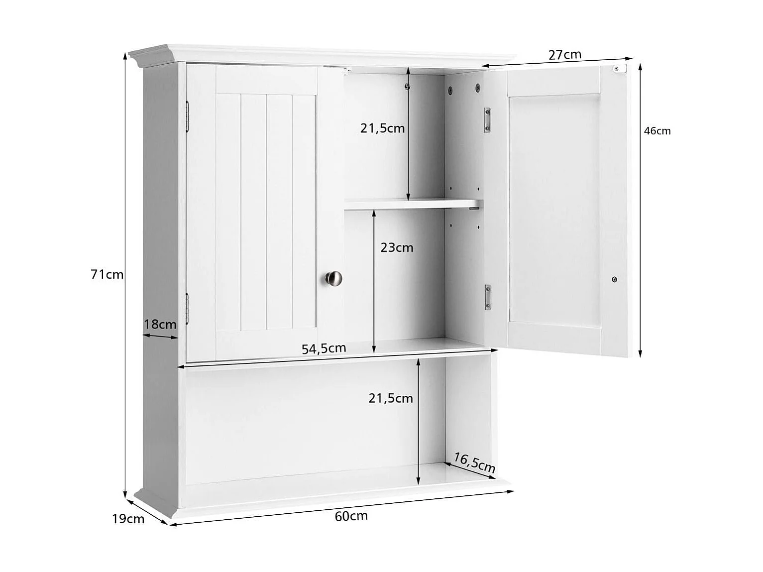 Meuble de Salle de Bain Armoire Murale avec 2 Portes Étagères Réglables Armoire à Pharmacie de Rangement 60x19x71cm Blanc