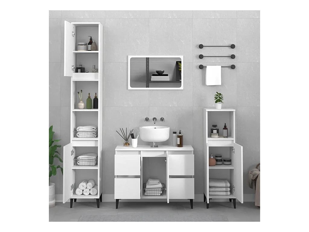 Armoire de salle de bain avec miroir blanc haute brillance 80x17.2x75 irma