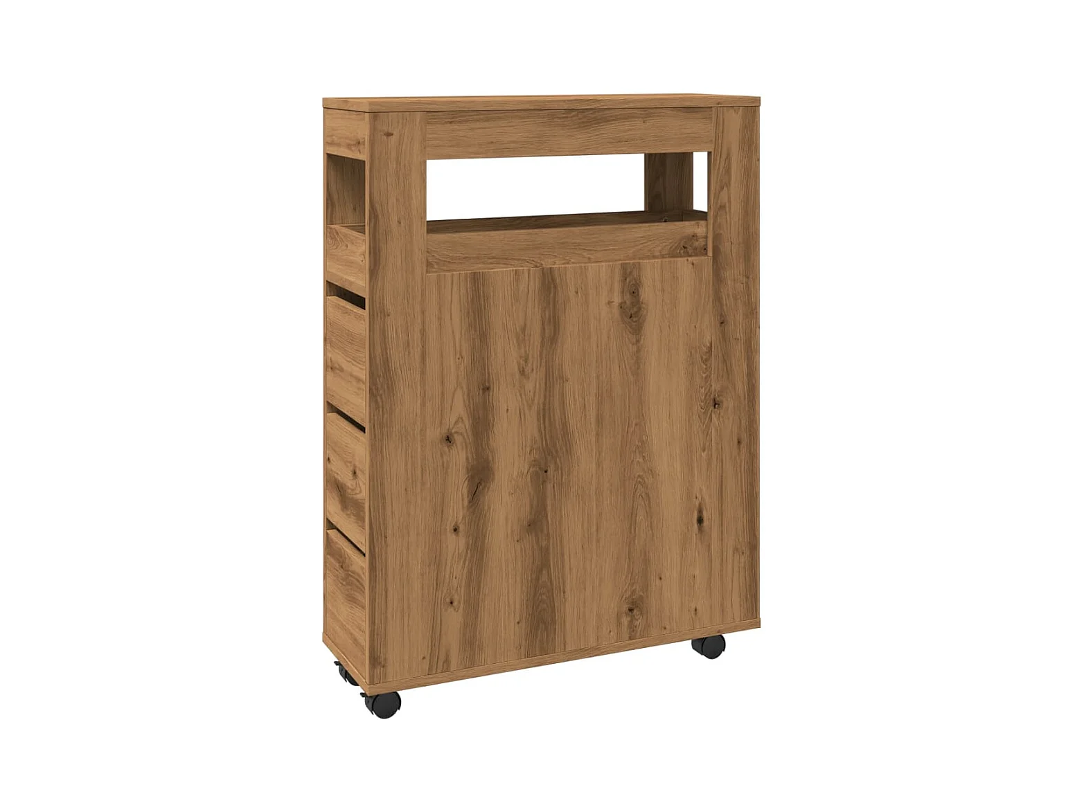 Armoire de salle de bain étroite avec roulettes chêne sonoma