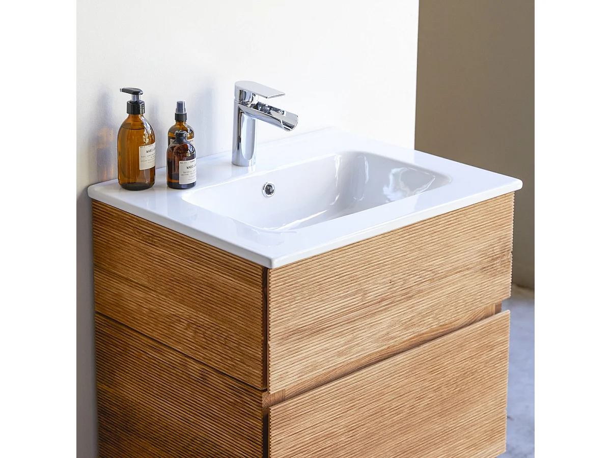 Meuble Salle de bain en bois de chêne et céramique 60 Easy