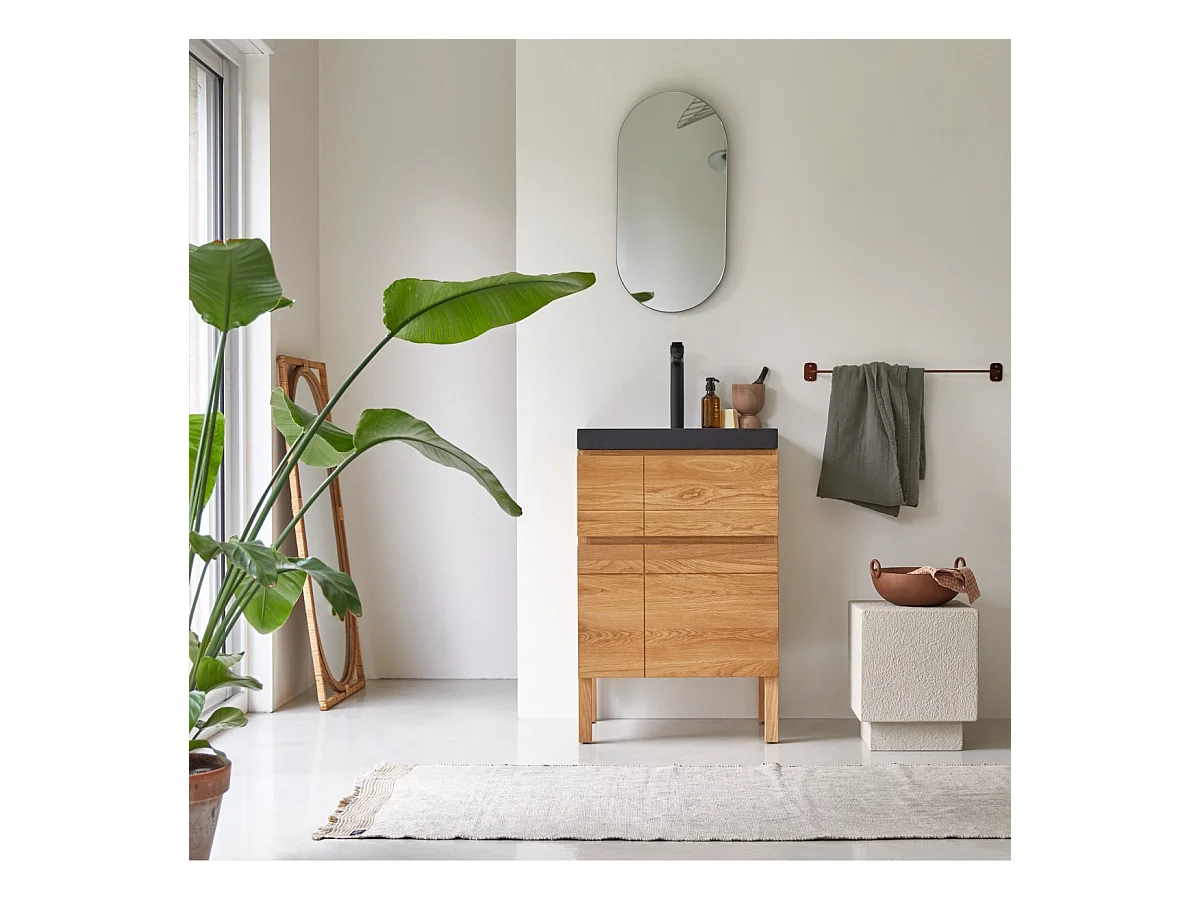 Meuble Salle de bain en bois de chêne et pierre de lave 60 Easy