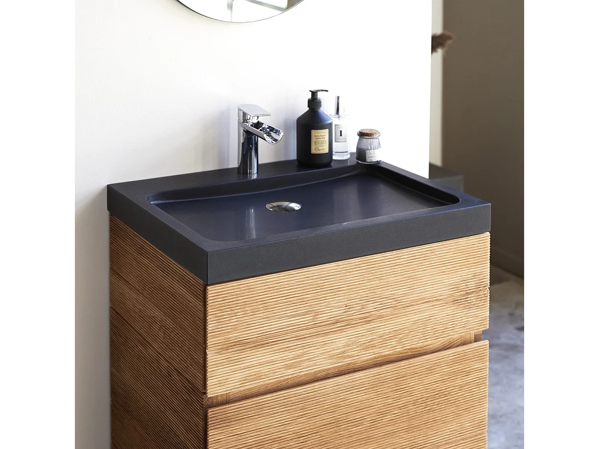 Meuble Salle de bain en bois de chêne et pierre de lave 60 Easy
