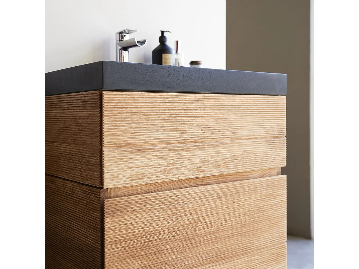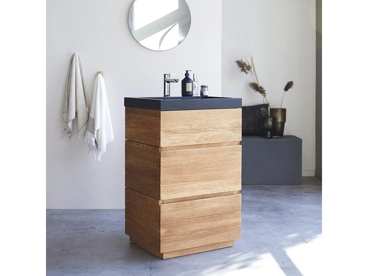 Meuble Salle de bain en bois de chêne et pierre de lave 60 Karl