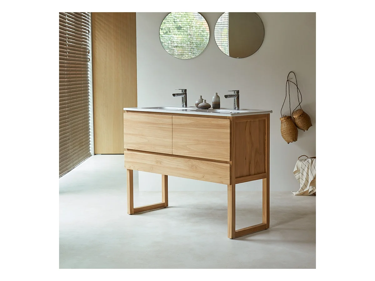 Meuble Salle de bain en bois de teck et céramique 120 Edgar