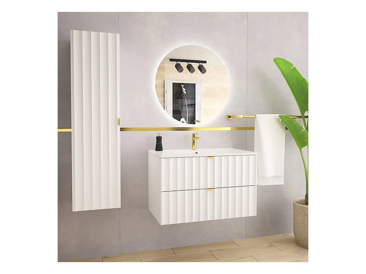 Colonne de salle de bain suspendue striée - Blanc mat - H140 cm - ZEVINI
