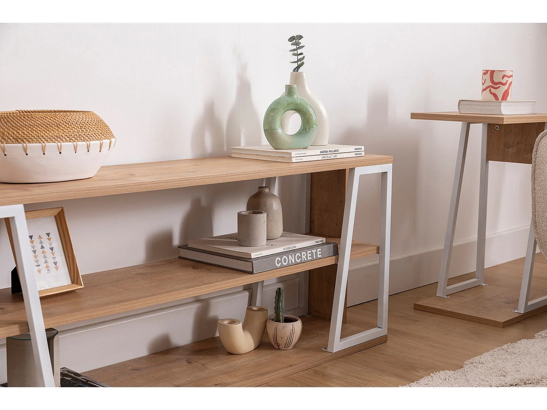 Meuble TV – 160 cm x 30 cm x 48,6 cm – Saphir et Blanc – Panneau de particules et Métal