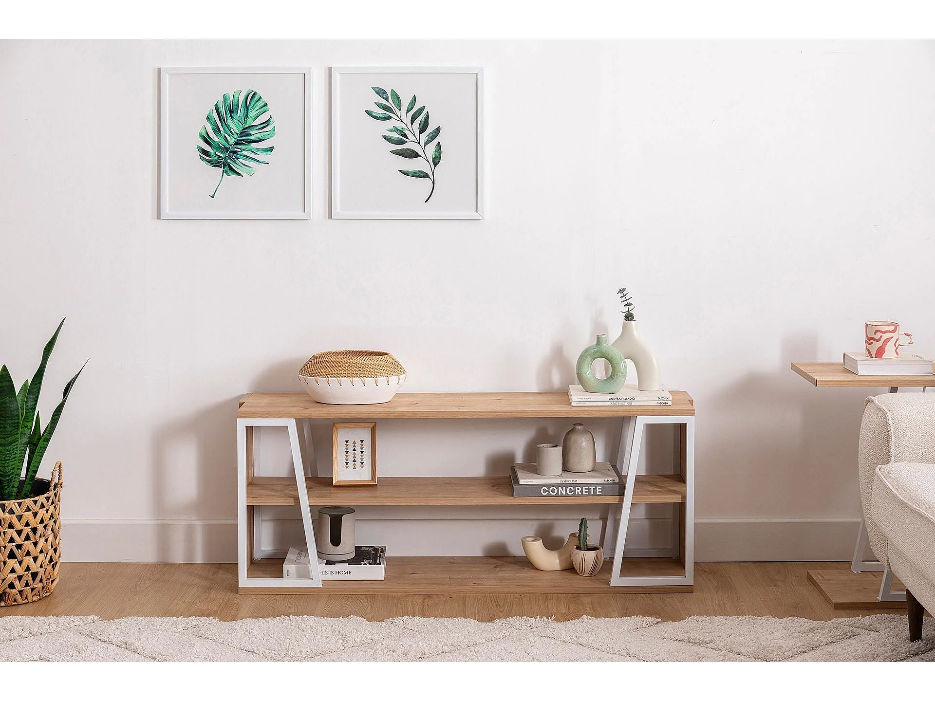 Meuble TV – 140 cm x 44,6 cm x 29,6 cm – Blanc – Panneau de particules mélaminé