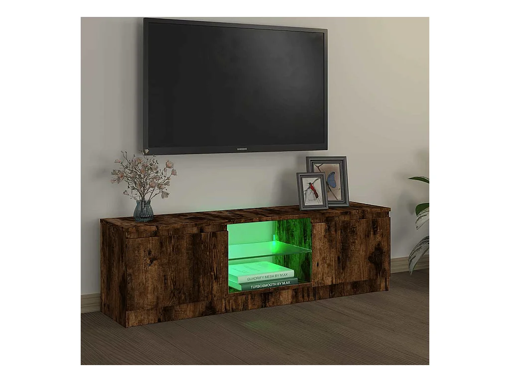 Meuble TV avec lumières LED chêne fumé 120x30x36 cm