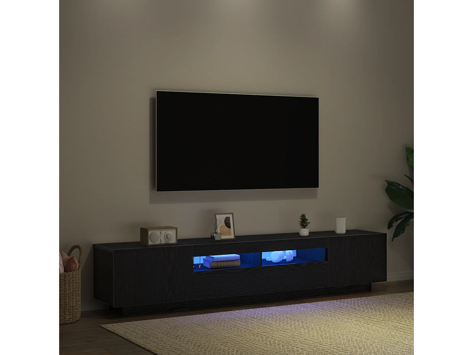 Meuble TV avec lumières LED en chêne noir 200x35x40 cm