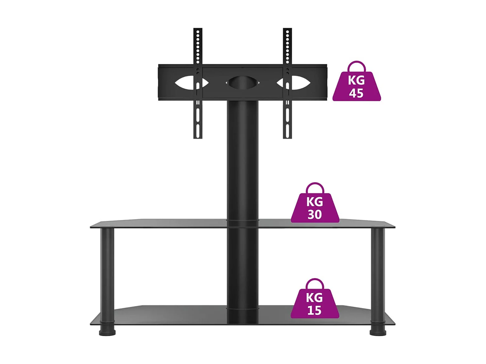 Meuble TV d'angle 2 niveaux pour 32-70 pouces noir