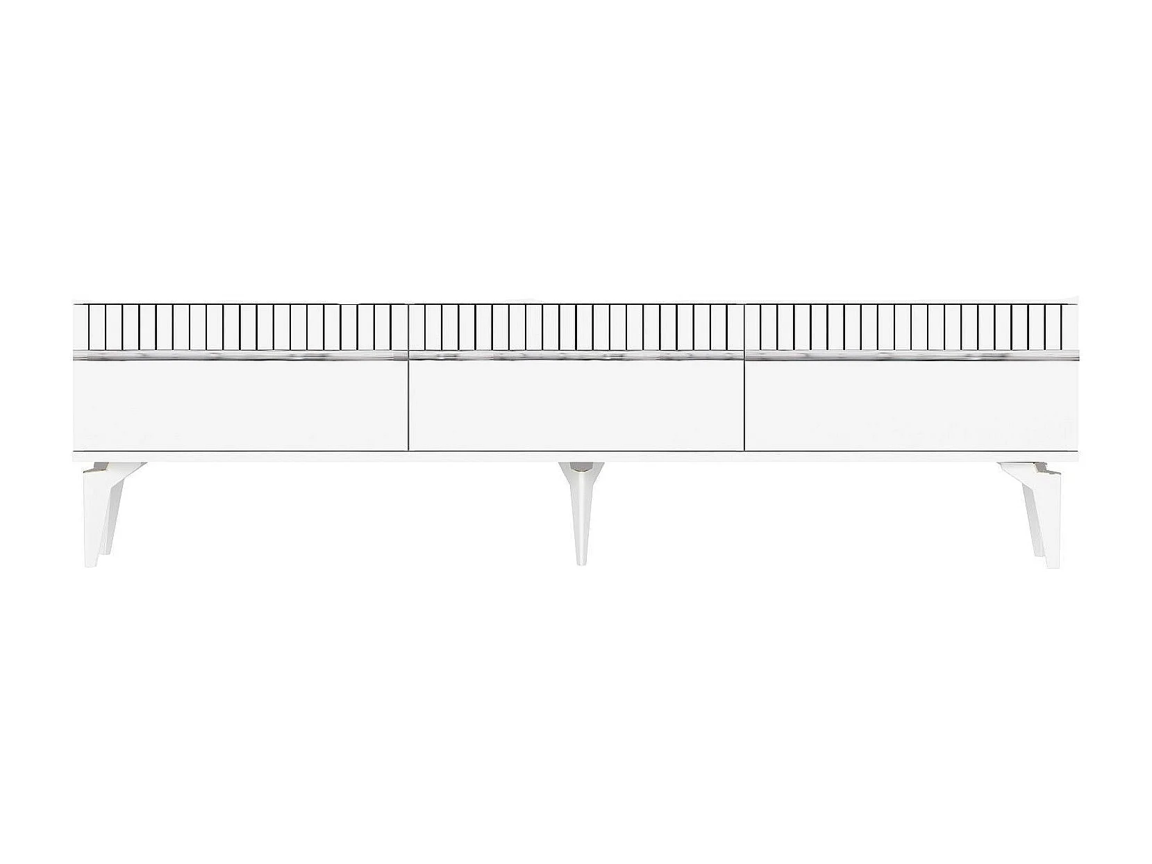 Meuble Tv design 3 portes basculantes Zerka L180cm Blanc et Argent