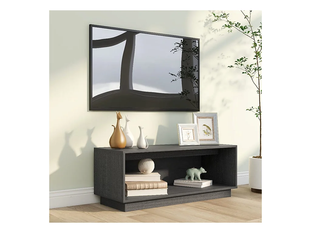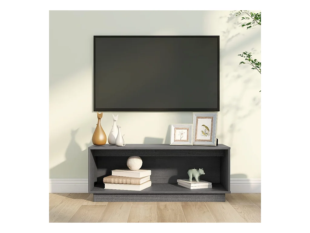 Meuble TV Gris 90x35x35 cm Bois de pin massif
