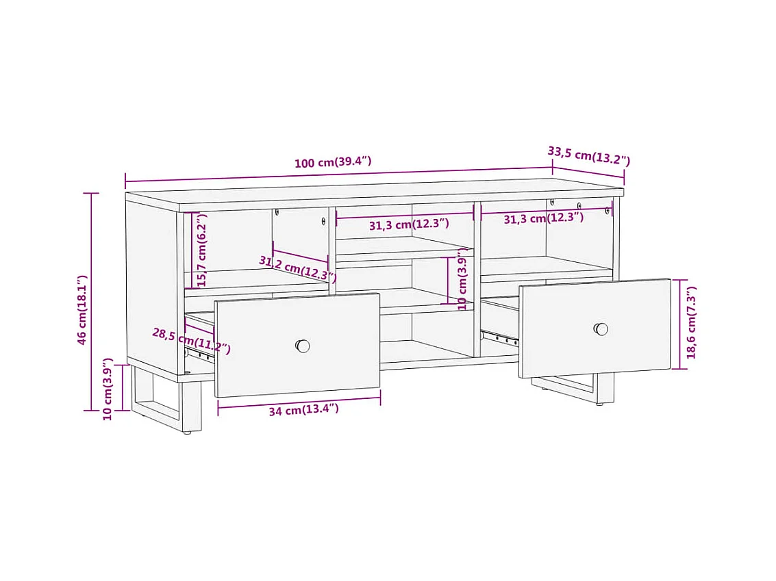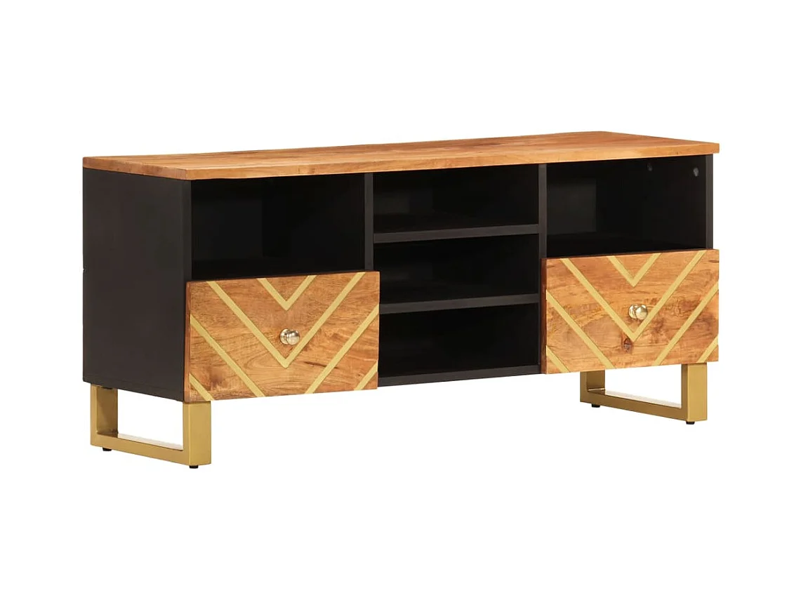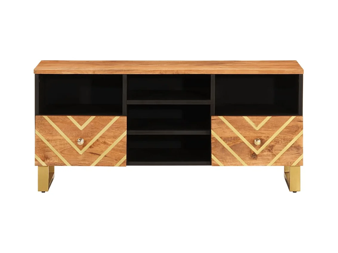 Meuble TV marron et noir 100x33,5x46 cm bois massif de manguier