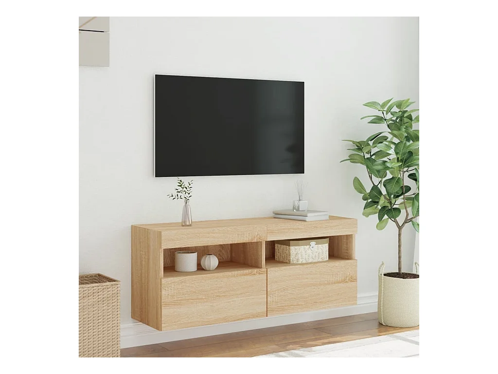 Meuble TV mural avec lumières LED chêne sonoma 100x30x40 cm