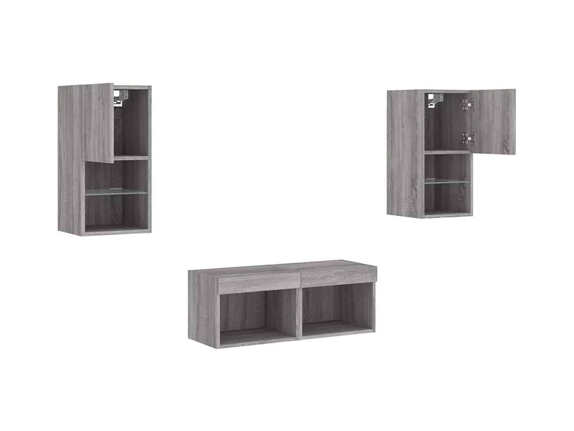 Meuble TV muraux 4 pcs avec lumières LED sonoma gris