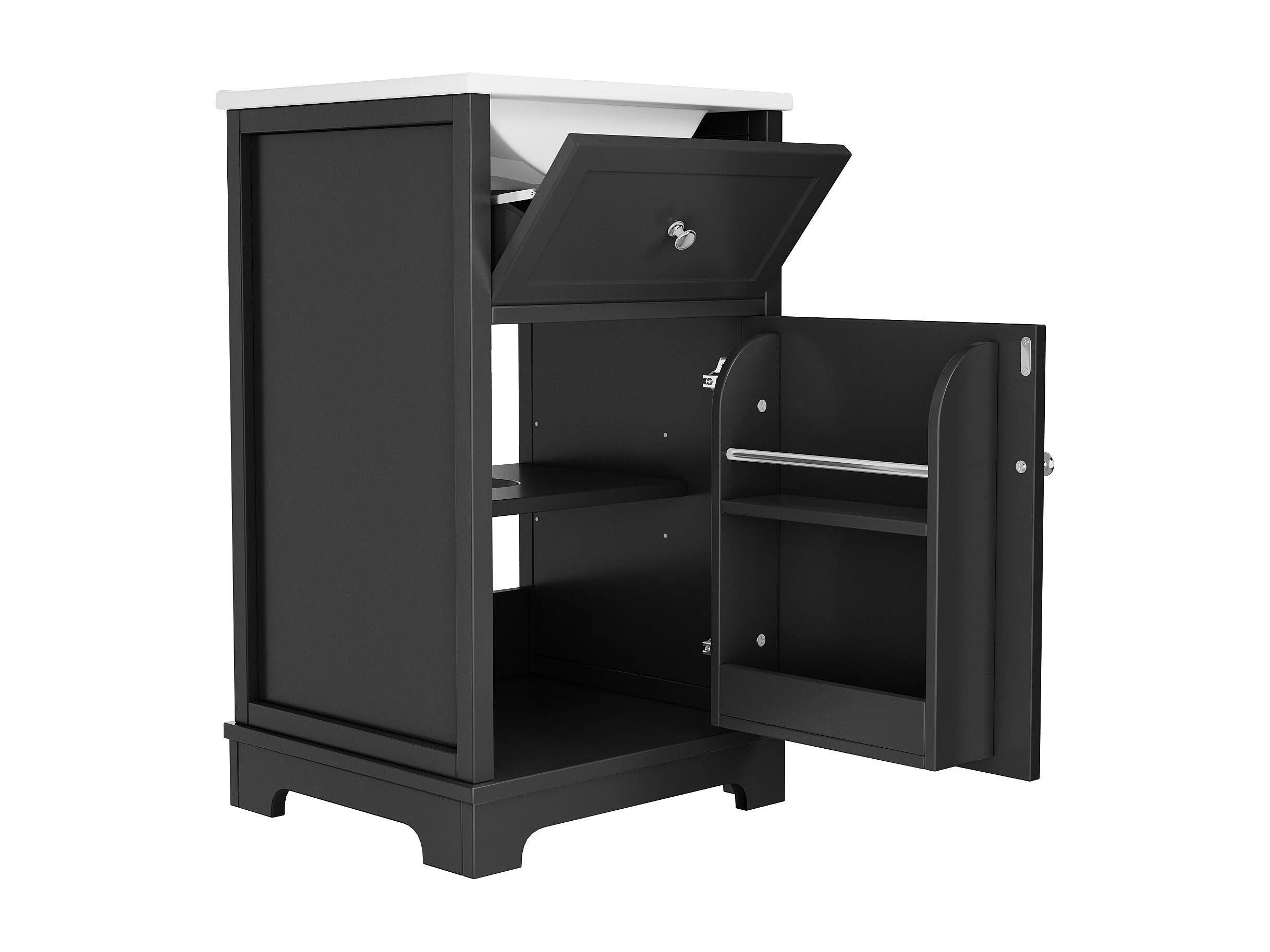 Meuble vasque de salle de bain - 51 x 46 x 87 cm - finition laquée - avec tiroir + porte de rangement + vasque - MDF - noir